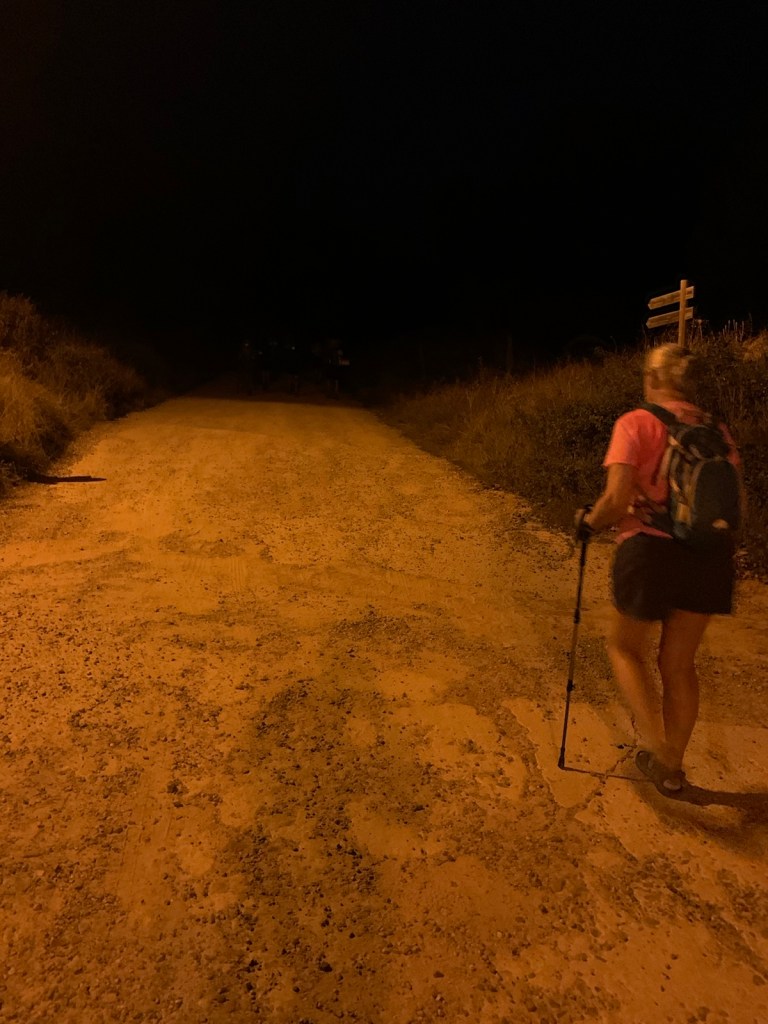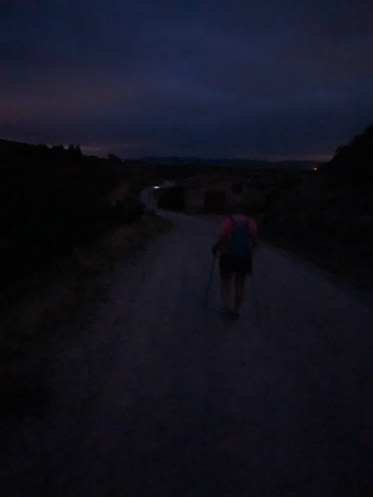 Our walk began in the dark. We didn’t unpack our headlamps, because even in the dark the first few miles are straight-forward and we know our way. Jim calls the initial half-mile “Proud Mary hill” because the first time we climbed Alto Najera, Linda turned up the volume on her phone and played the Tina Turner classic to help us get to the top.