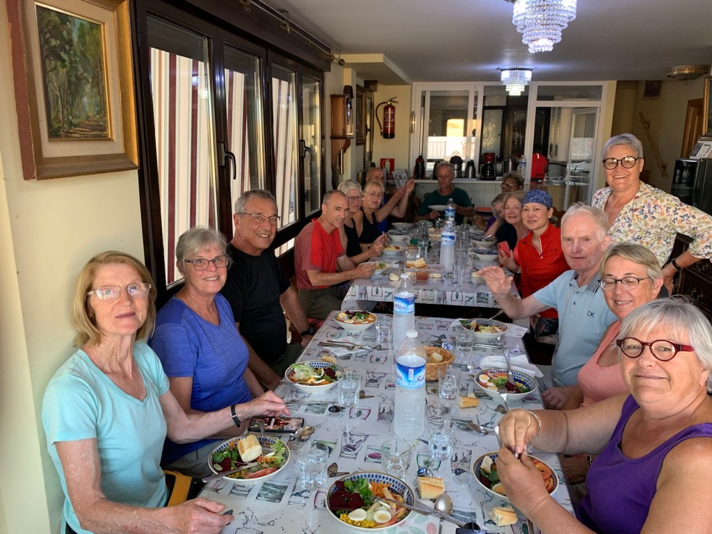 We had a nice dinner with 14 other pilgrims. Our table included a couple from Ireland and three ladies from France. We chatted about a variety of experiences on the Camino and elsewhere. It was fun and stimulating and a nice way to end the day.