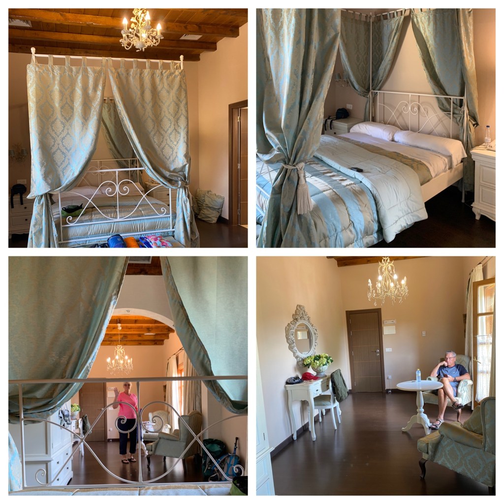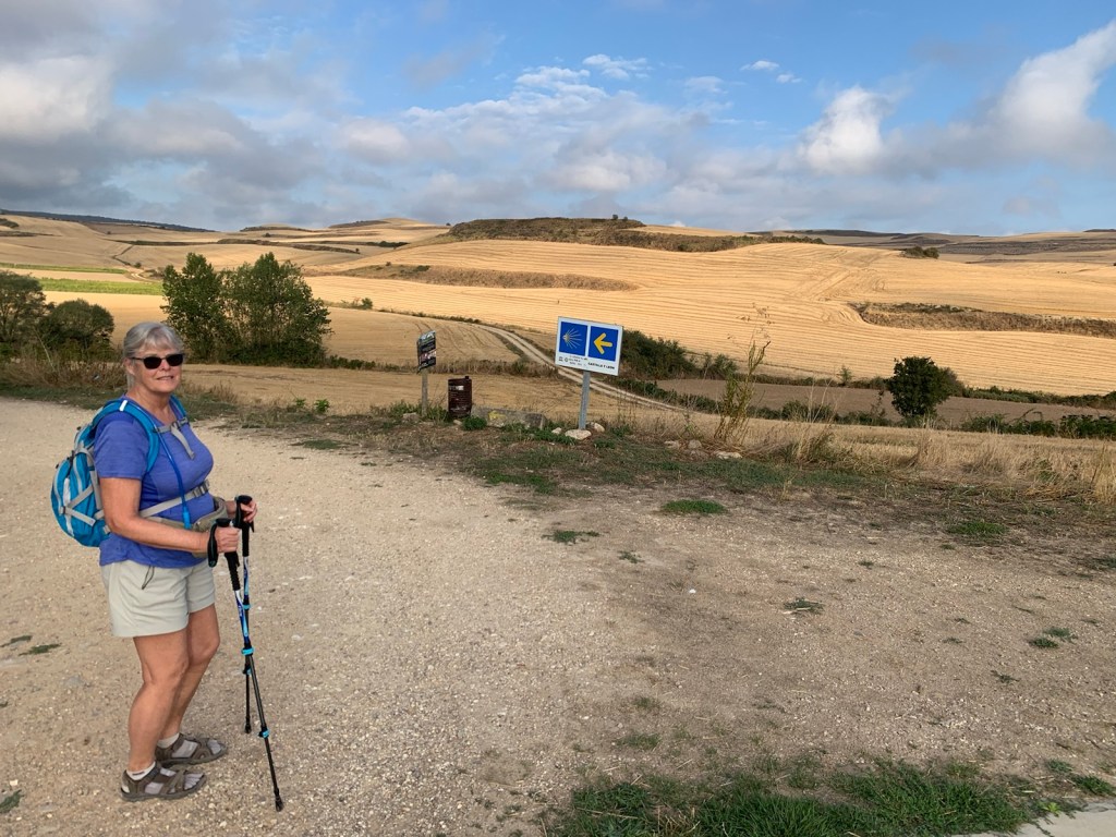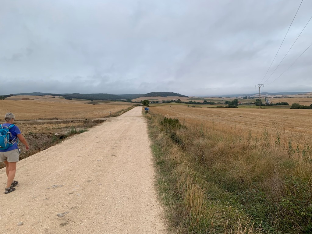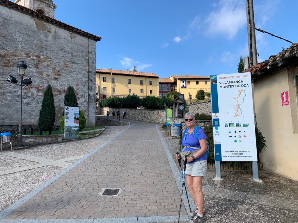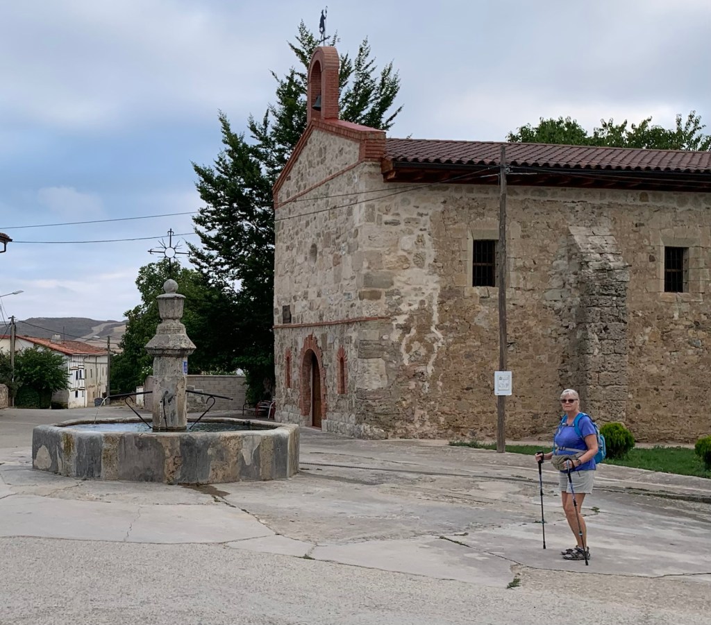 The Villambistia Fountain is supposed to eliminate tiredness if you immerse your head in the water. We were all set to give it a try (given our recent run with Covid), when Linda noticed the Non Potable sign… and so we opted instead to continue with our paced Camino approach. In the background is the Hermitage of San Roque, patron saint of bachelors, diseased cattle, dogs, falsely accused people, invalids, Istanbul, surgeons, tile-makers, grave-diggers, second-hand dealers, pilgrims, apothecaries as well as of dogs and epidemics.