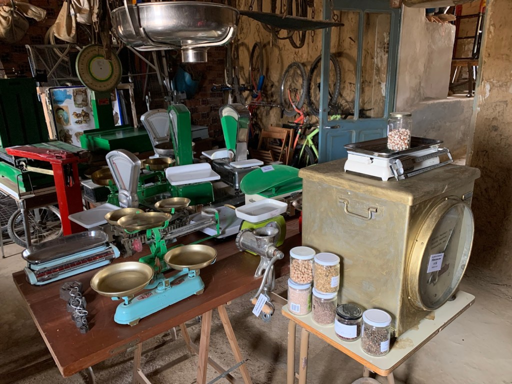 He opened another door down to another lower level filled with all kinds of weighing scales, again many well over a hundred years old…also in one corner were a couple dozen aging cheese wheels… 90 days to maturity.