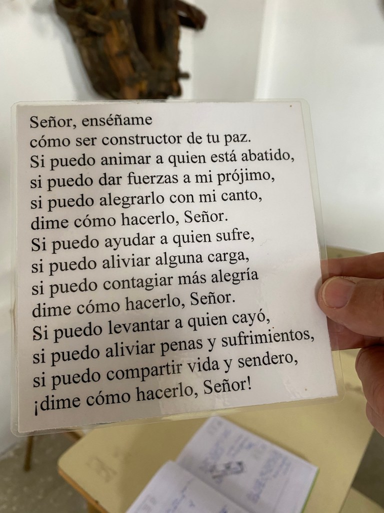 At the end of our tour, Mario asked us to sign his guestbook. He said he so far had over 1000 entries! He also showed us and read to us, what appeared to be a prayer which we copied.
