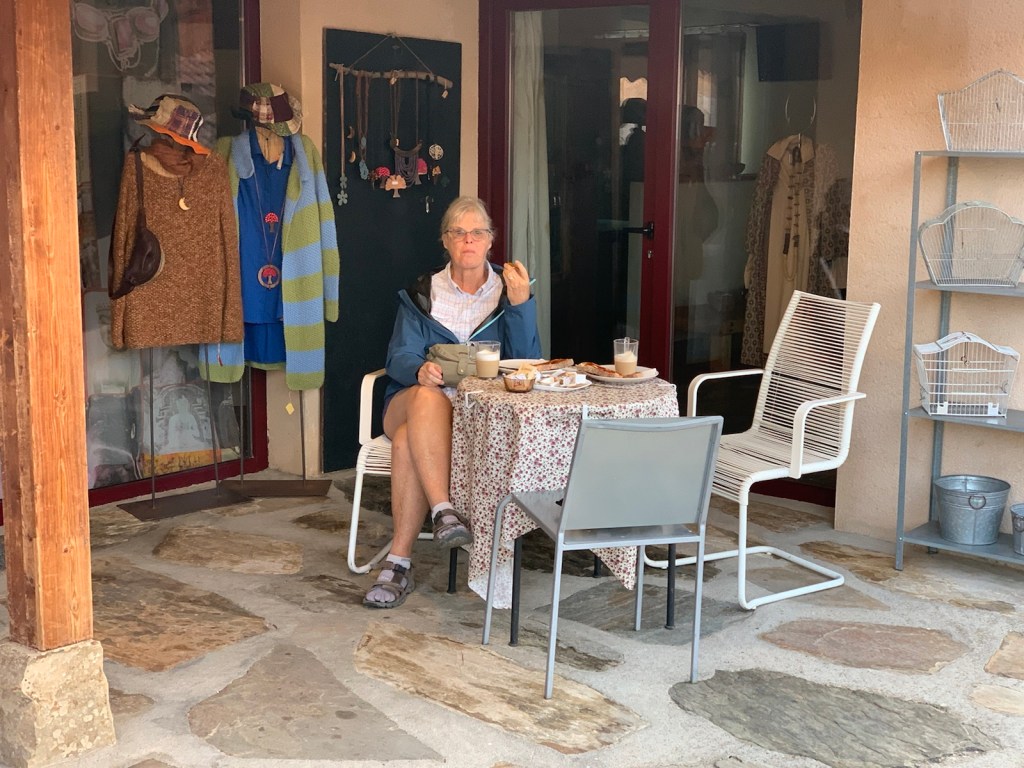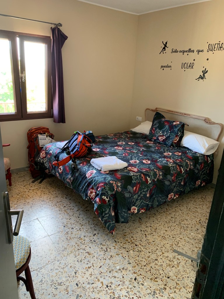 We arrived at El Tesin at 10:30 (we stayed here in 2019) and were told that our room would not be ready until noon. We were disappointed, but decided to just wait at a table on the terrace (road in front of the albergue). At noon we were invited in to check in and then escorted to our room.