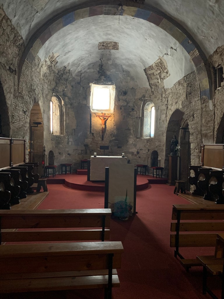 We stopped by the small church in the village, got a stamp for our credentials from the Benedictine priest who was manning the nearby church store, and walked back to our final room for the day (we hope!).