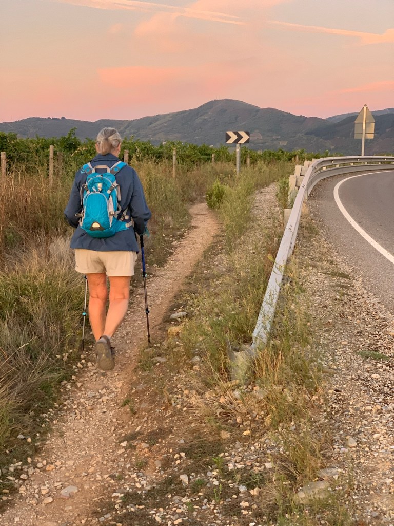 We walked on or slightly off the main road for the first couple of miles. We’re in the heart of the Bierzo region which specializes in very nice, smooth, flavorful wines made from mencía grapes. The fragrance of grape juice was ever present as vineyards are all around us and we’re in the middle of their harvest season.