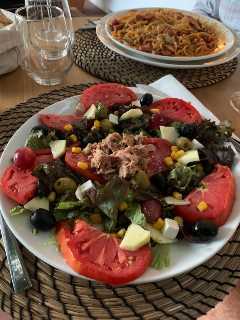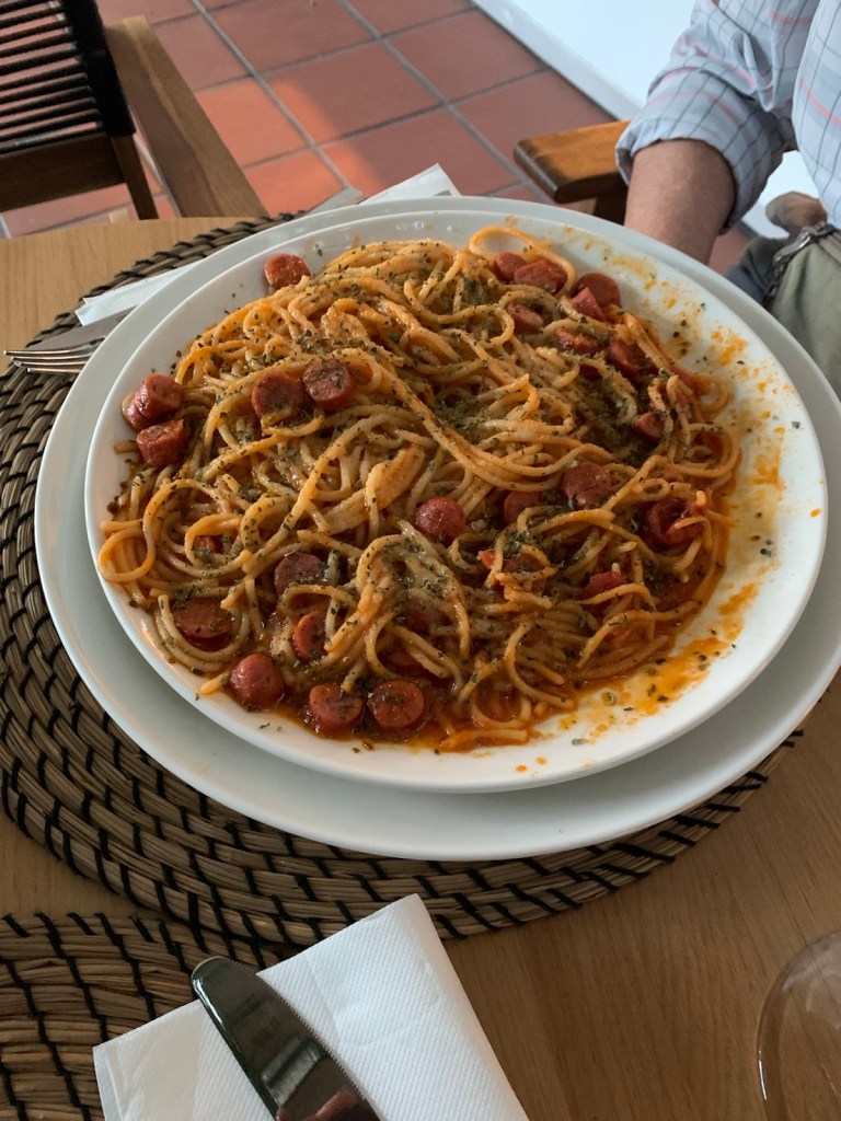 At 7:00 we had a one course dinner for “cena” in our albergue, to go with our remaining wine, prepared by the owner’s mother.