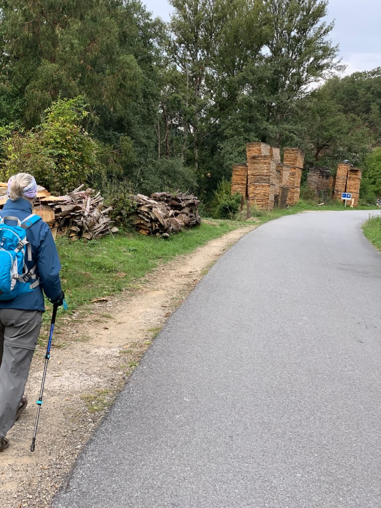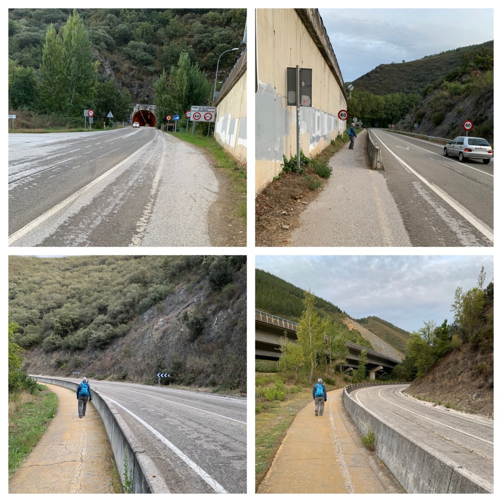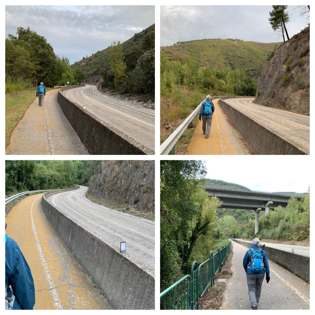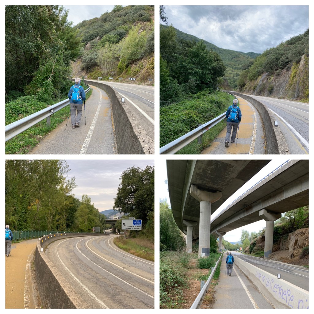 This albergue/bar is at the halfway point of this morning’s walk and would have provided a break, breakfast … but it was closed and has been for several months ……. and based on the sign on the door, may be permanently closed. So we moved on to more monotony.Finally getting off the highway for the final mile into Trabadelo