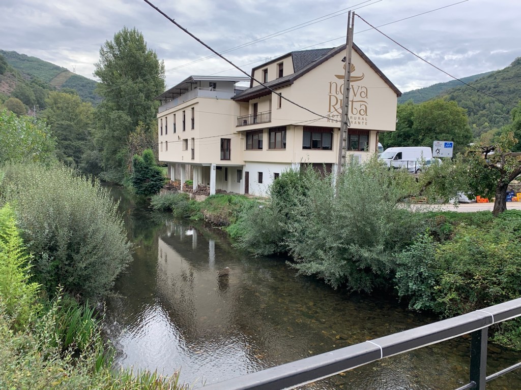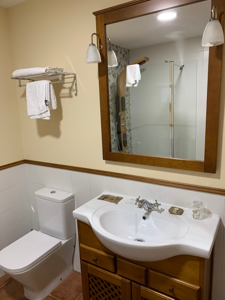 Whew! Finally a change in scenery.A very old Chestnut? tree we think… but huge and majestic looks like a lumber mill is nearbypretty garden… and the lumber millOur Hotel Rural, Nova Ruta, in Trabadelo. A-6, Salida 415, We have a nice large room (45€), meant for a small family, we think. We stayed in this same room in 2019.Also, nice bathroom… and great shower!! (even large bar of designer soap included)
