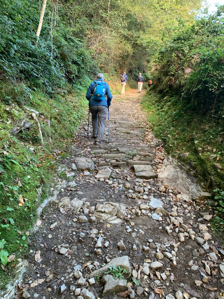 The length of today’s walk was not a challenge, but the hills were. The altitude of Triacastela and Pintin are essentially the same at 2100 ft. But today we climbed over 1000 ft. That means we went up a total of 1000 ft and to arrive at the same elevation we had to climb down 1000 ft. That was the nature of today’s walk and we were tired when we finished but recovered with lunch and some downtime this afternoon.