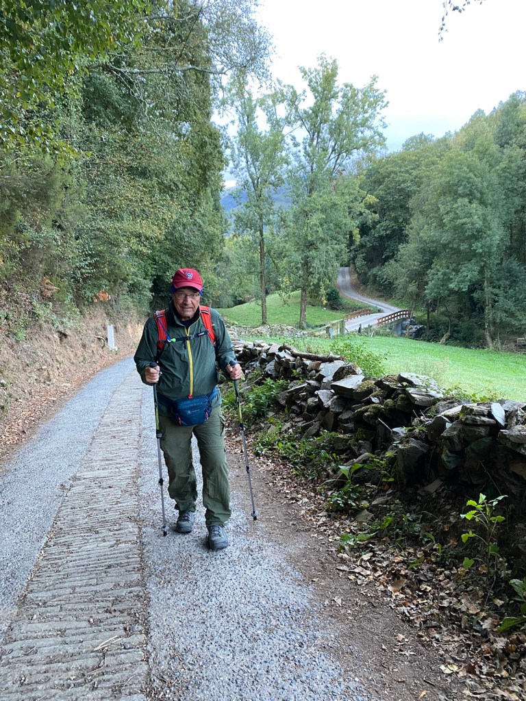 The temperature was 43F in Triacastela at 8:45 a.m. We’re thinking we’re not likely to see warm weather again on the Camino, but walking in the hot sun is no longer a problem.