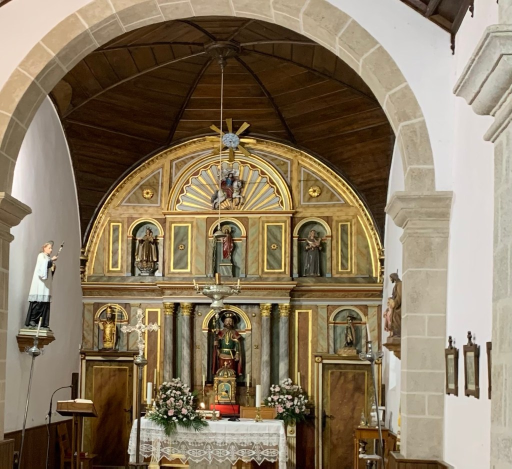 As we left Boente we stopped at the Iglesia Parroquia Santiago de Boente. A young priest, seated just inside the church stamped our credentials and explained that during the 1918 Spanish Flu epidemic, Santiago was closed, so this small church became the end of the Camino until the epidemic was over.