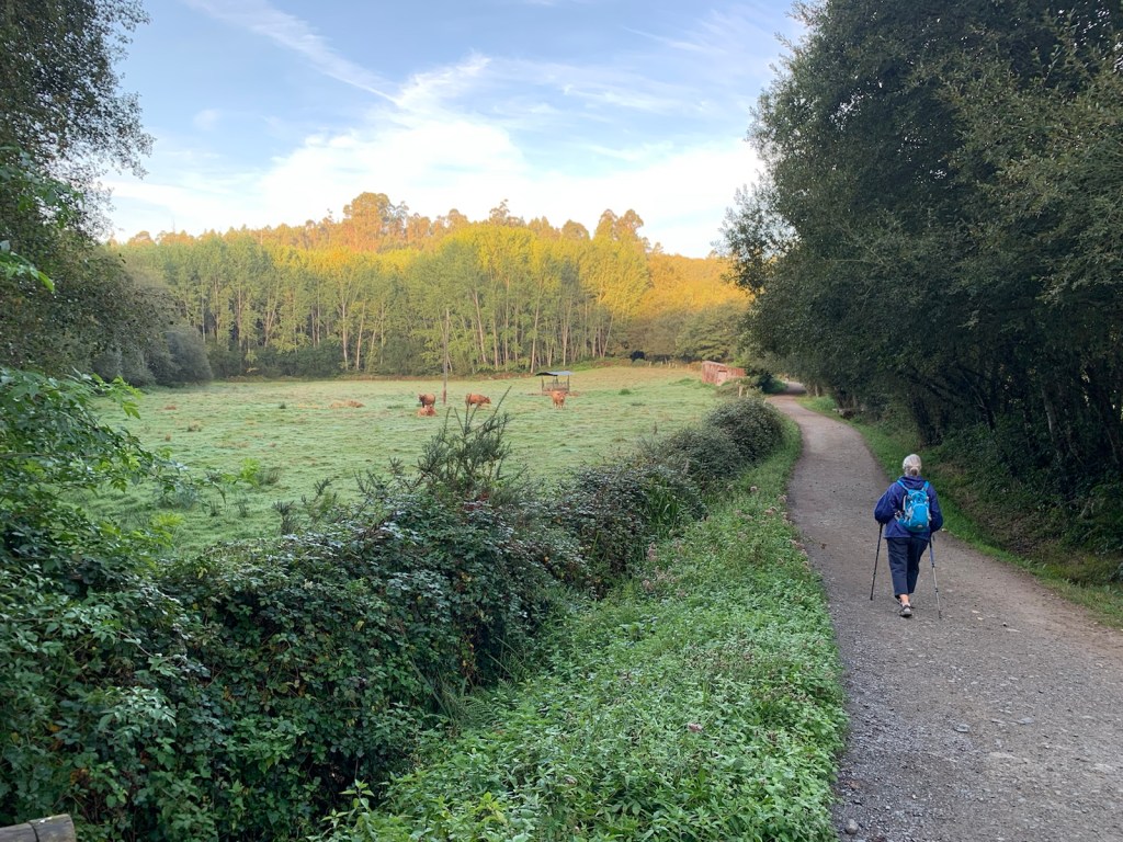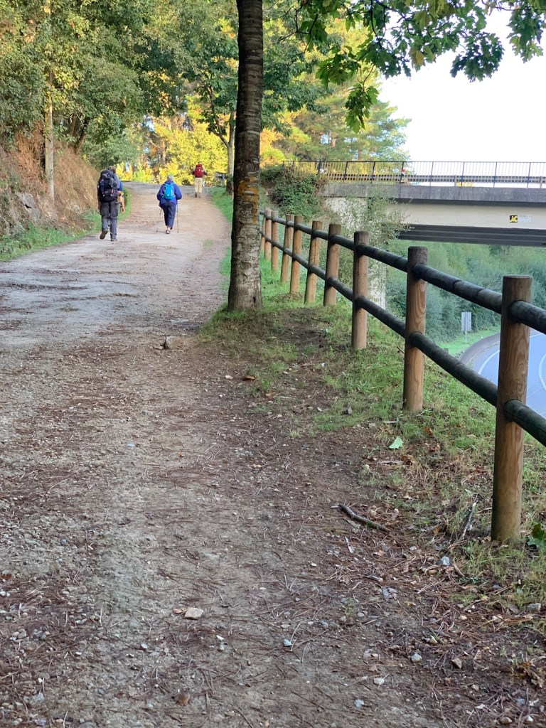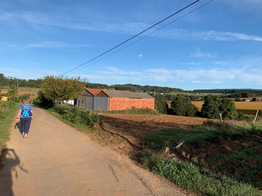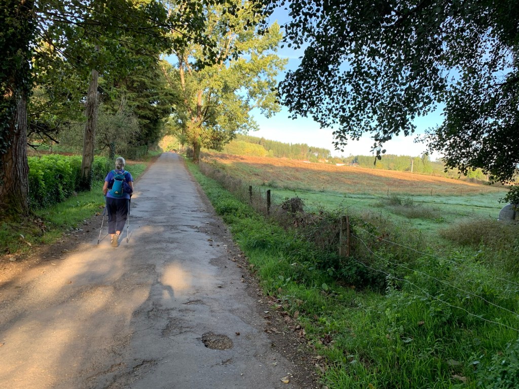 The walk today had a lot of ups and downs but they pretty much balanced out. The finish into Arzúa was a nice flat dirt path separated from the road by a hedge. Overall it was a good workout, but not too much.