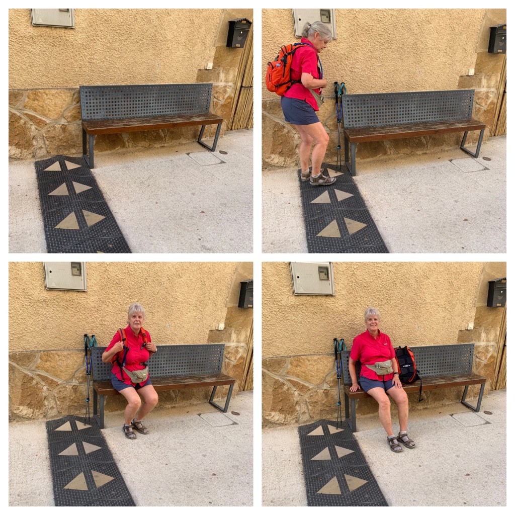 In 2014 after a killer climb up the hill into Lorca at the end of a 12 mile walk from Obanos to Lorca, Linda saw a bench, collapsed onto it and didn’t move while savoring a much deserved rest.