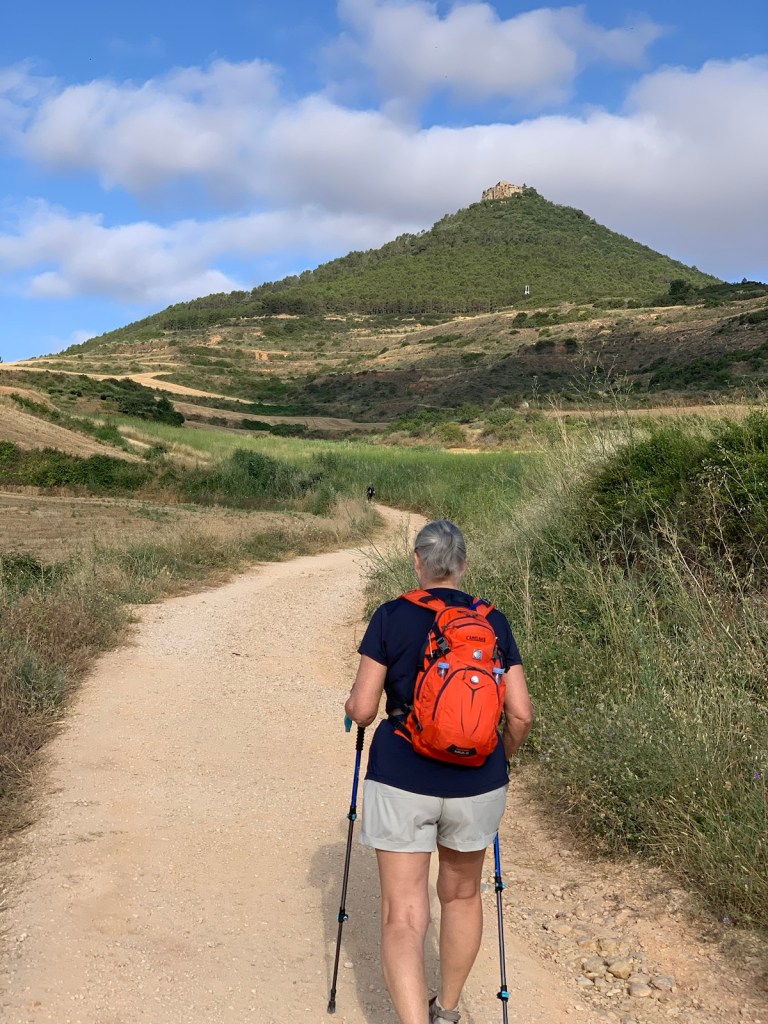 An imposing, conically shaped mountain, capped with the ruins of a medieval castle/fortress presented itself shortly after leaving Estella and is clearly the destination of today’s walk.