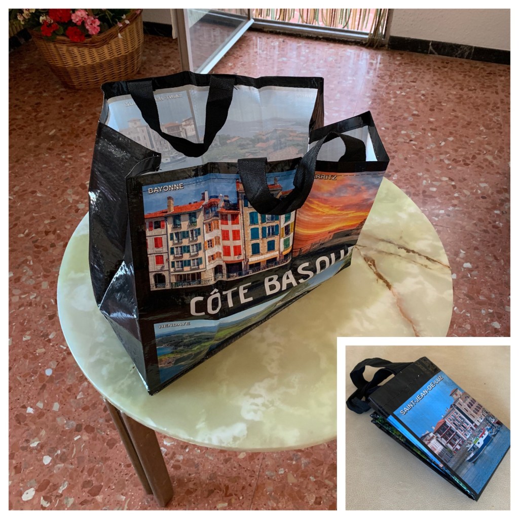 We finally were admitted to the apartment at noon and after a quick inspection of kitchen equipment and any other supplies available, Jim walked to the nearby supermarket with our shopping list. He was also equipped with his prized purchase from Biarritz, over 2 weeks ago, a heavy duty shopping bag.