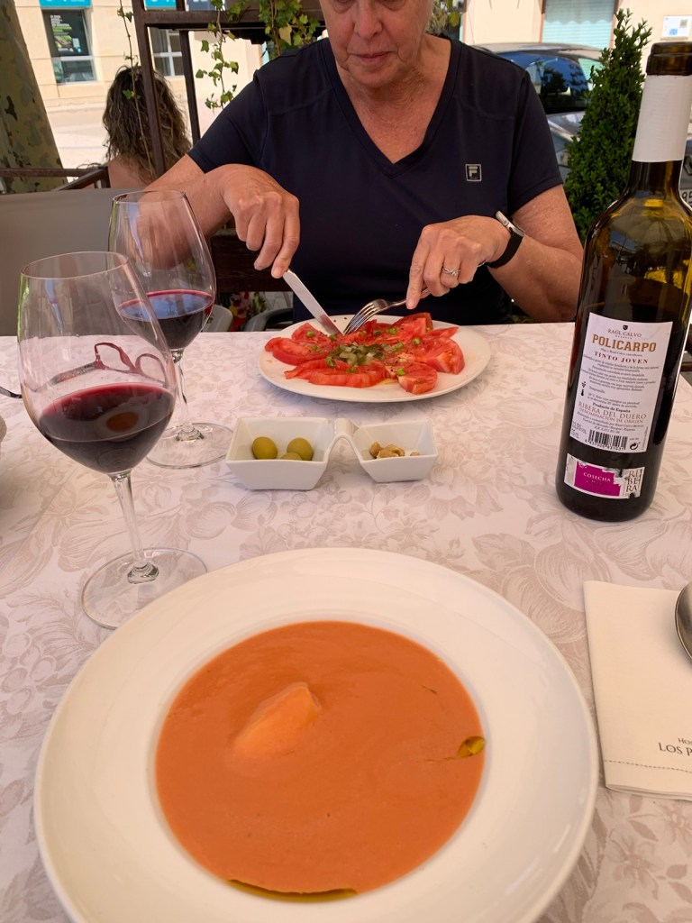 Our wine was unknown to us, a young, Tempranilla wine bottled in 2022! It was an unusually tasty and totally satisfying wine from Burgos and is not exported, so only locals get to experience it…. and thankfully, us, too.