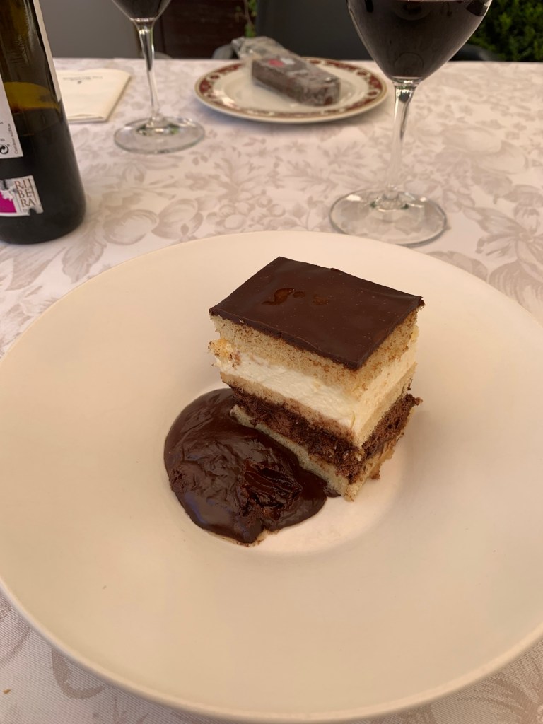 Jim’s dessert was a so-called chocolate tarte but was several layers of dark chocolate with a rich chocolate ganache.