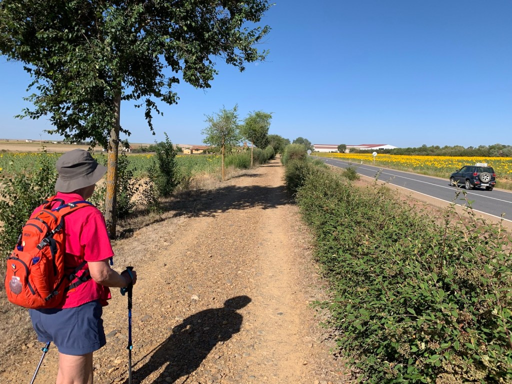 Our taxi arrived at 7:30 just outside our hotel in Villalcázar and took us to the edge of Calzadilla de la Cueza. This enabled us to skip a 12 mile section, which we also skipped in 2022 and 2019. Its not a difficult walk, just much longer than we prefer to walk plus, it has no services such as places to eat or drink or use the bathroom.