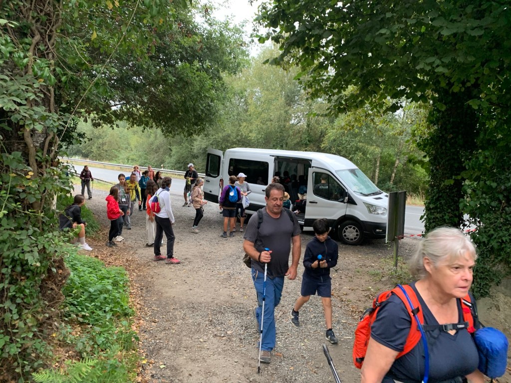 A van loaded with pilgrim gear for supporting a group of pilgrims walking, some with only a stick. We’ve noticed a larger number of families walking the Camino since Sarria.