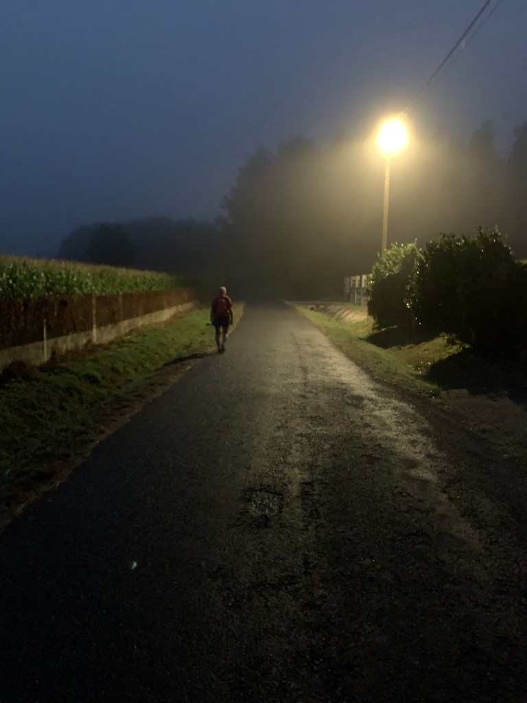 This is where the Camino (a final section on pavement from A Rúa) met and crossed the main road going into O Pedrouzo… direction Santiago.