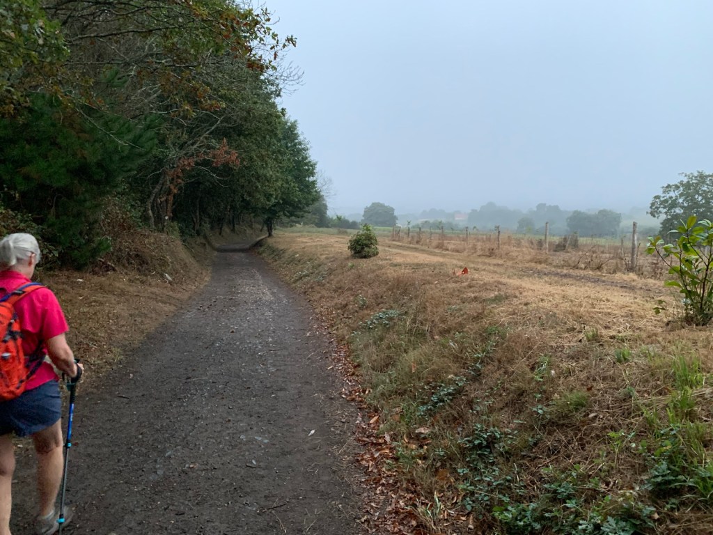 The light drizzle, threatening rain and fog, plus a mostly level dirt path made the walking easy this morning.