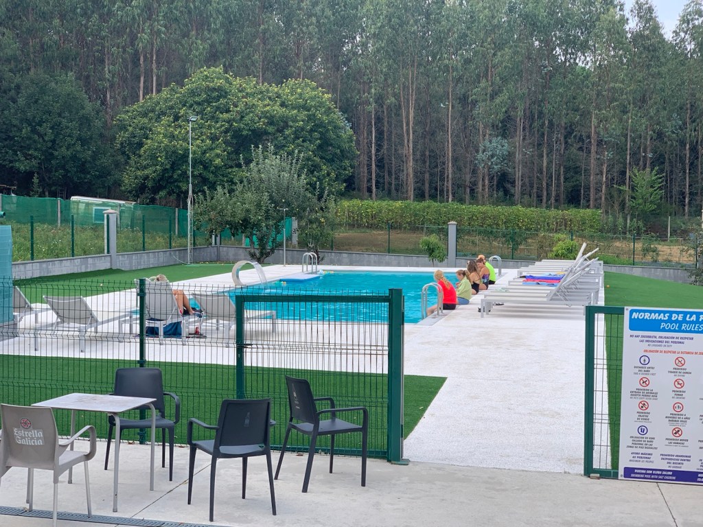 The CHE pool… a group of pilgrims from Valencia, sitting on the edge of the pool, feet only in the water. Once again, even in August the water too cold for a dip!