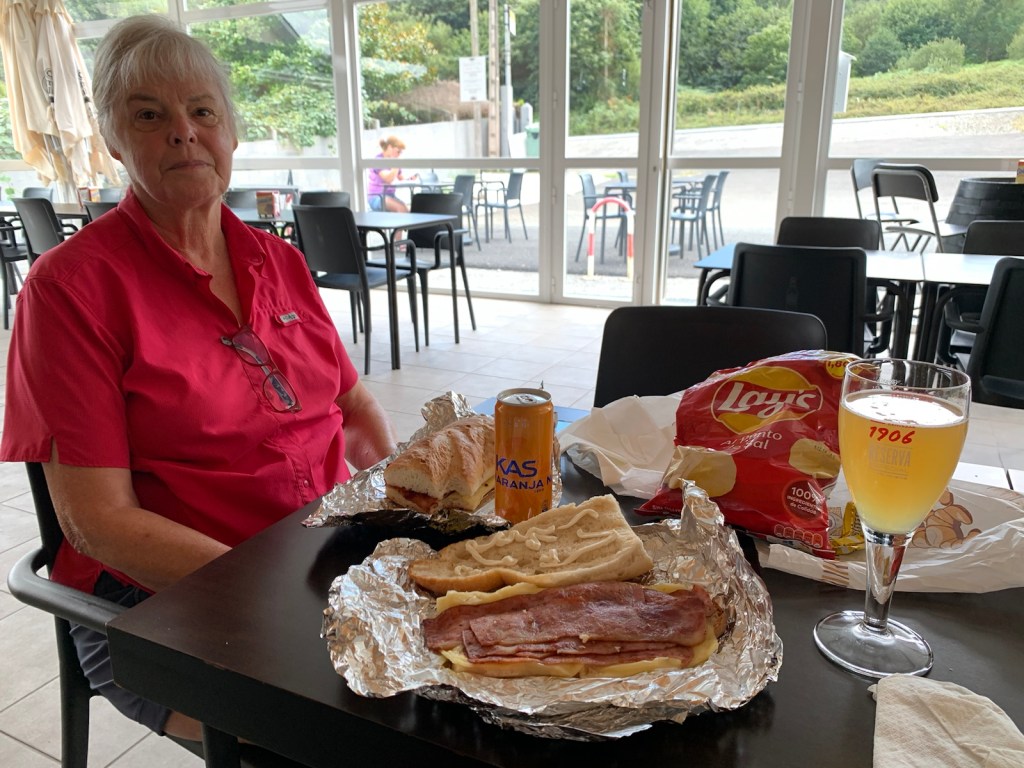 In 2017, we learned the hard way that Pensión CHE is not in O Pedrouzo. It’s a couple of miles beyond, outside the village of Amenal, but only a few hundred yards off the Camino. It’s a nice property, has a big pool (always too cold for Jim to use). It also has no food, only a bar with drinks. If you want food, you order it from O Pedrouzo and have it delivered by a CHE establishment. No other services are near Pensión CHE.