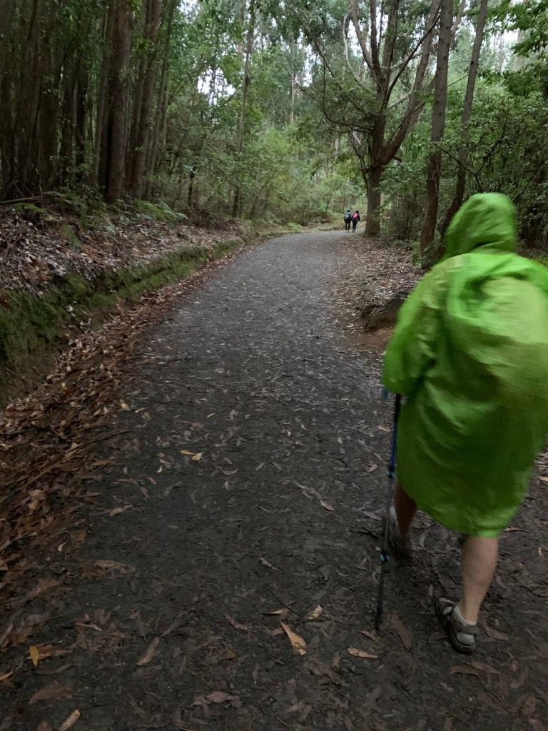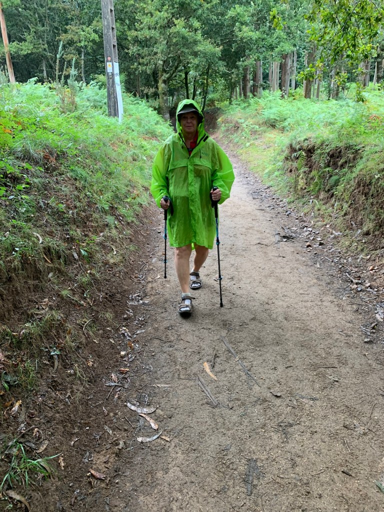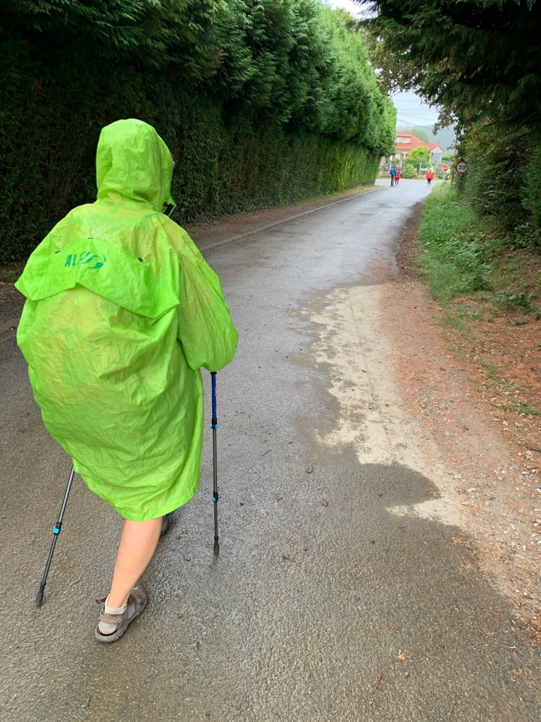 This morning when we got ready to leave CHE, we again reviewed all 4 apps, including their respective radar and again confirmed no chance of rain this morning. So, we included rain gear in our day packs (wise pilgrims that we are) and began our walk.
