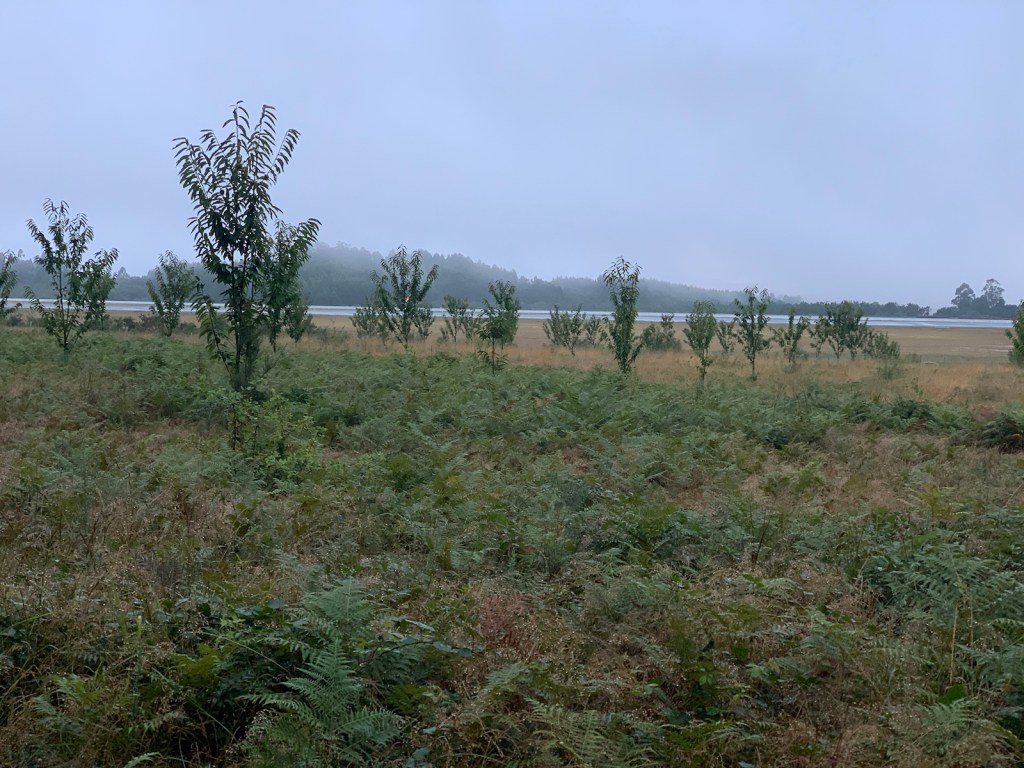 We walked into the hamlet of San Payo (pop.25) where we stopped for breakfast. There were a hundred or so pilgrims in line to order, get their credential stamped, use the toilet. The rest filled the inside tables, except for the one Linda grabbed for us. The outside tables were unused because of the continuing non-rain.