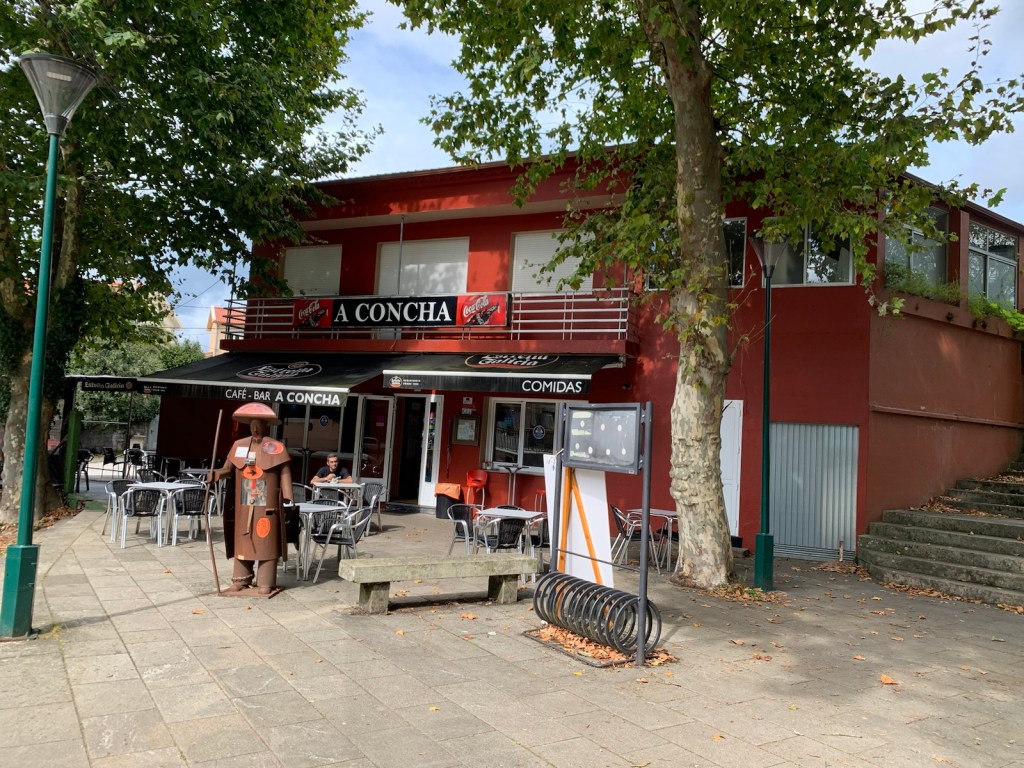 We left our poles (our transported packs had already arrived) and walked another few hundred yards to the village square and hung out at Bar/Cafe A Concha.