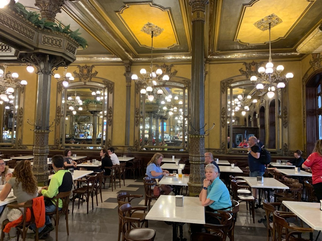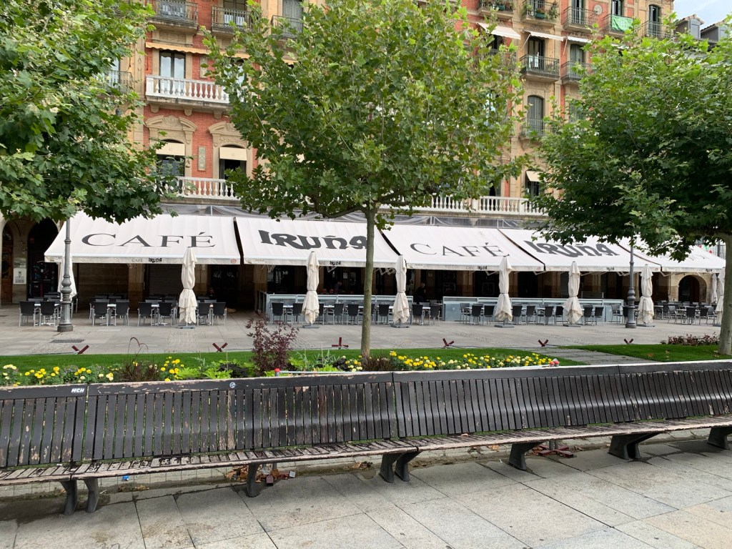 we perched on a bench in front of the Cafe Iruña after breakfast this morning to relax and observe the activity and scenery of the Plaza.