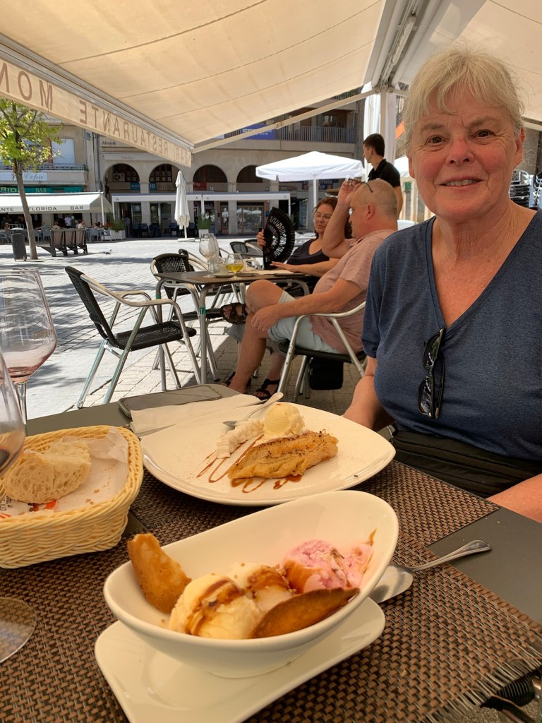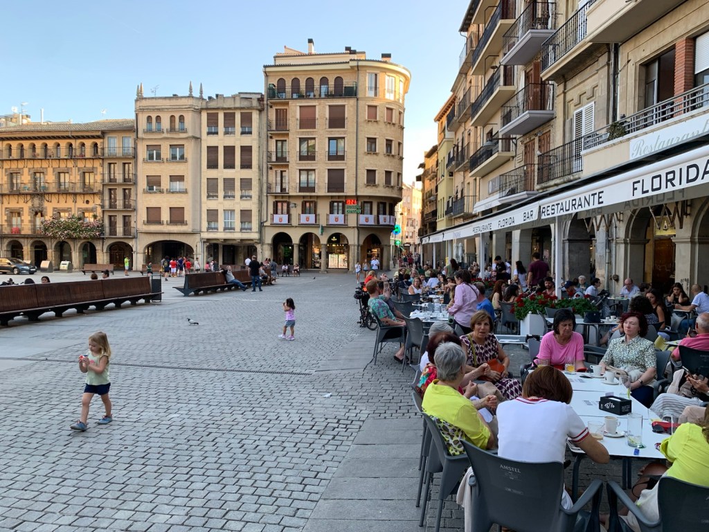 This is also the 6th time we have stayed at Hostal Cristina, located on the Plaza de los Fueros. Although a large stage was installed in the Plaza when we arrived, no major festivities appeared to be underway. In years past we have witnessed huge markets, annual festivals with period costumes, “gigantes” dancers, bull running, bands, parades, etc. all in the plaza viewed from our room balcony or out among the revelry.