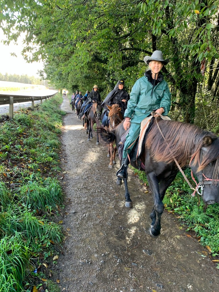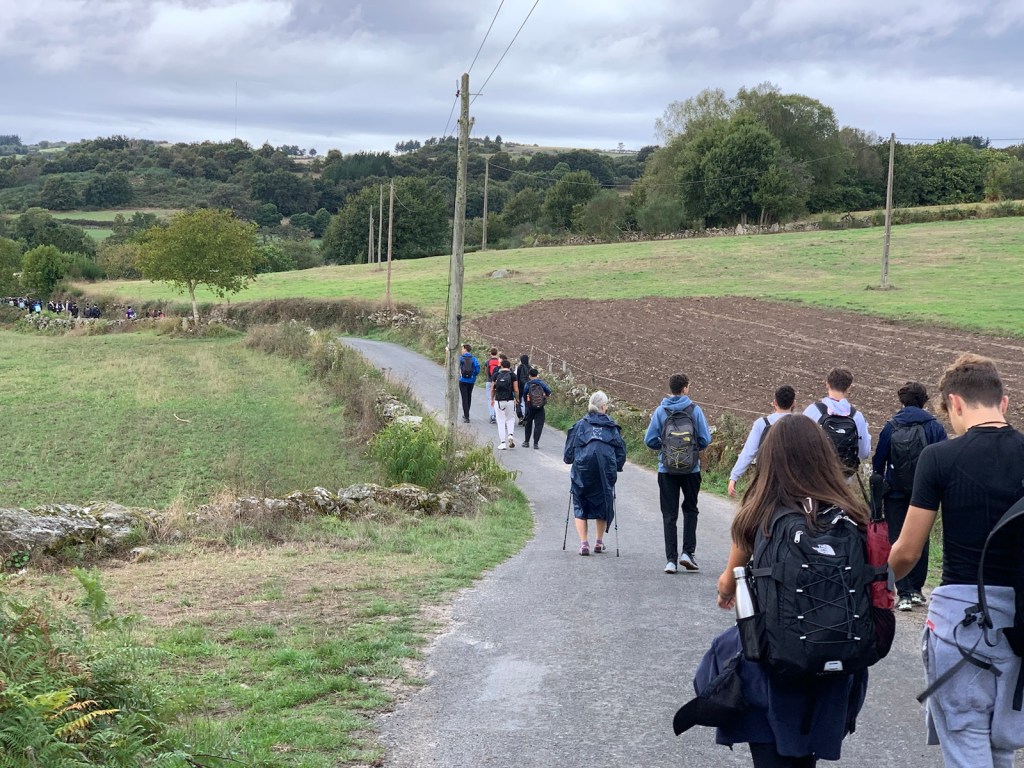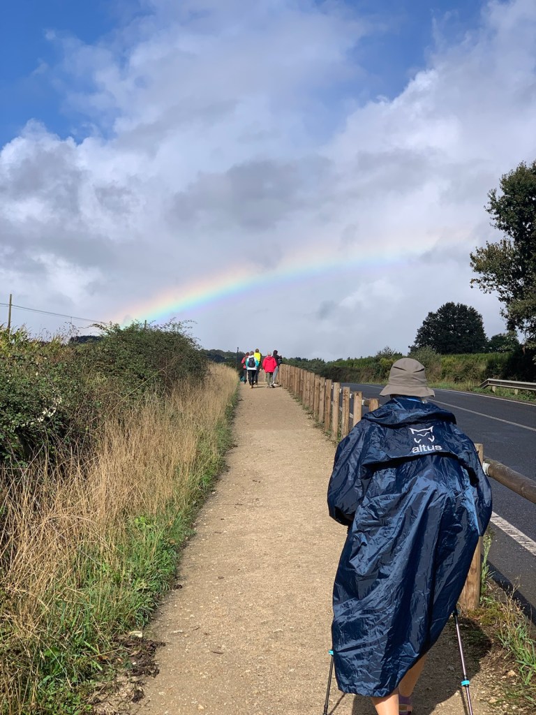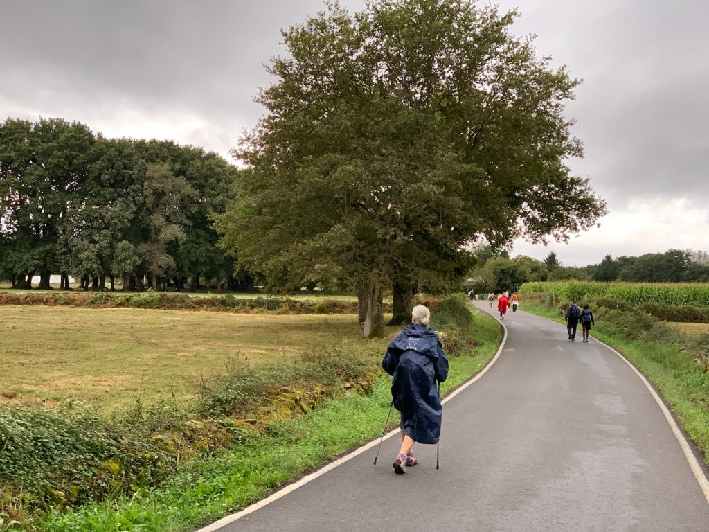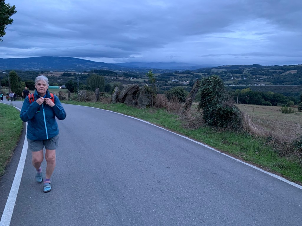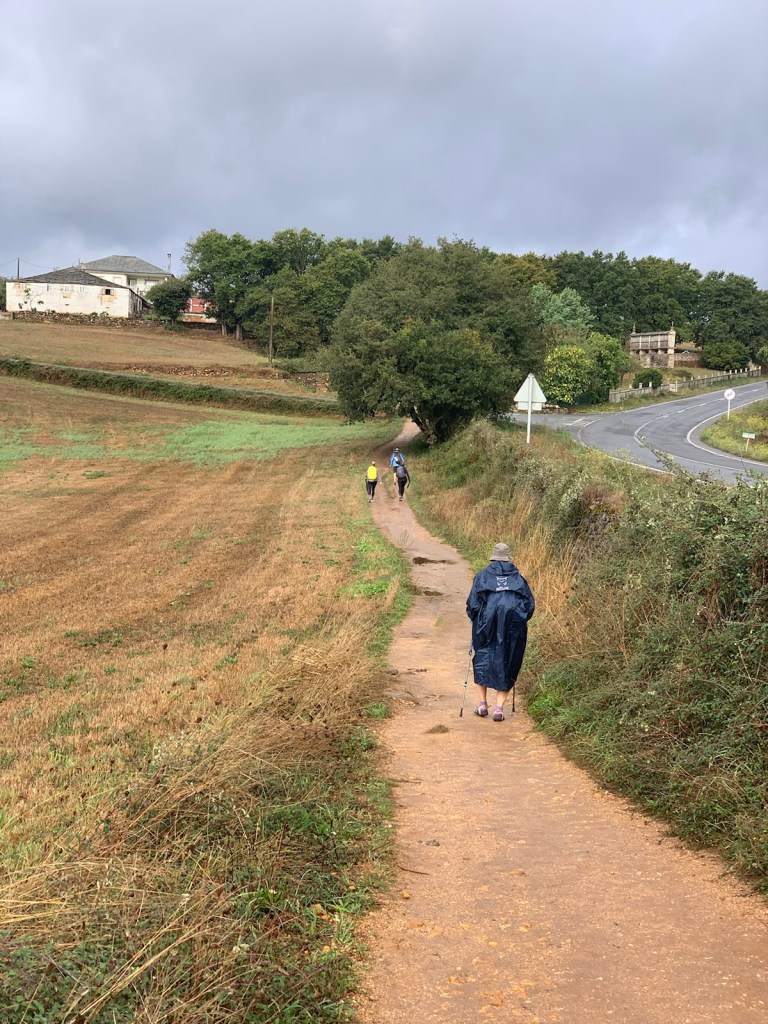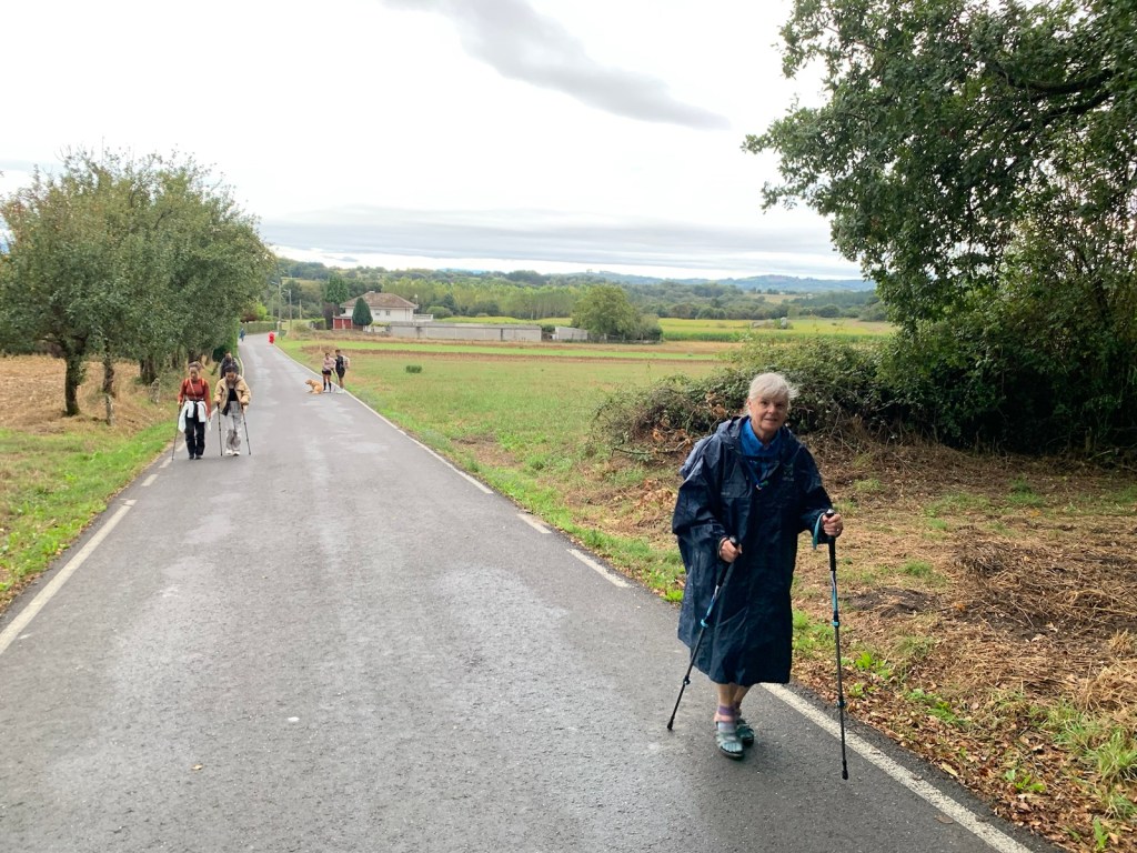For the first time in forever, it’s not supposed to rain today! All forecasts, claim there is a zero chance of rain during our walk. So, we put on our regular jackets for the 42F cool morning air, but Jim still put his rain poncho is an easy-to-get-to position in his day pack, just in case. One thing we know for certain, Camino 2024 provides, RAIN, whether you need it or not.
