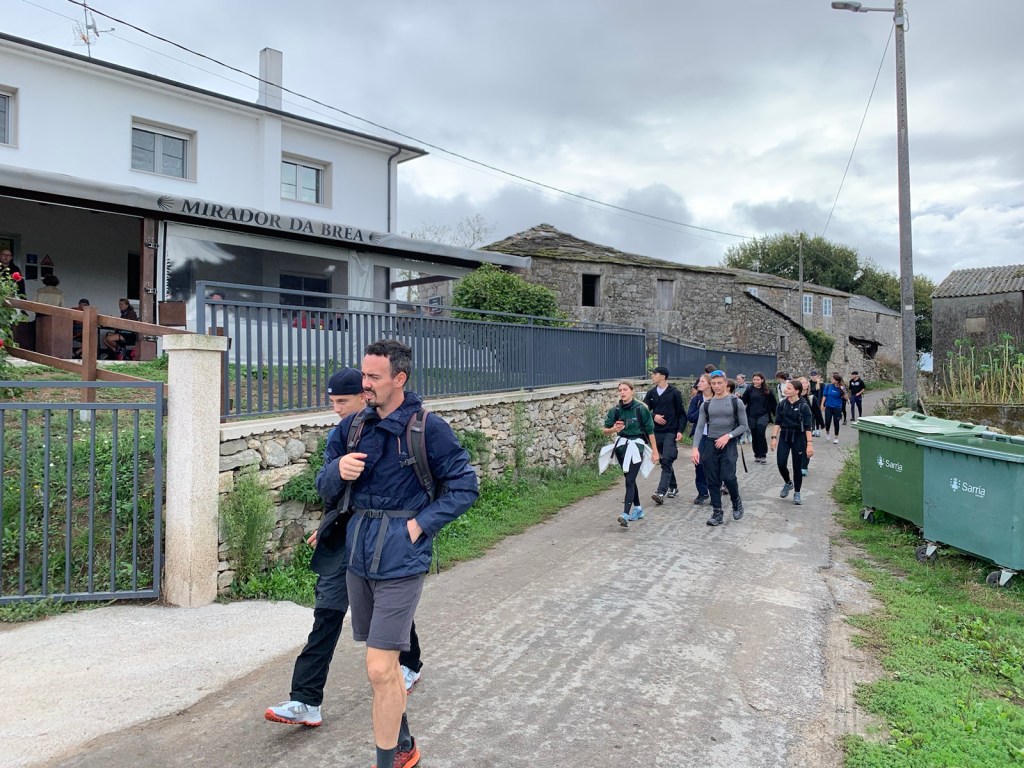We waited for the rain to stop before leaving our apartment for a usual breakfast spot in Portomarin. The forecasts all indicated we had a non-rain window from 9:30 to 11:00.