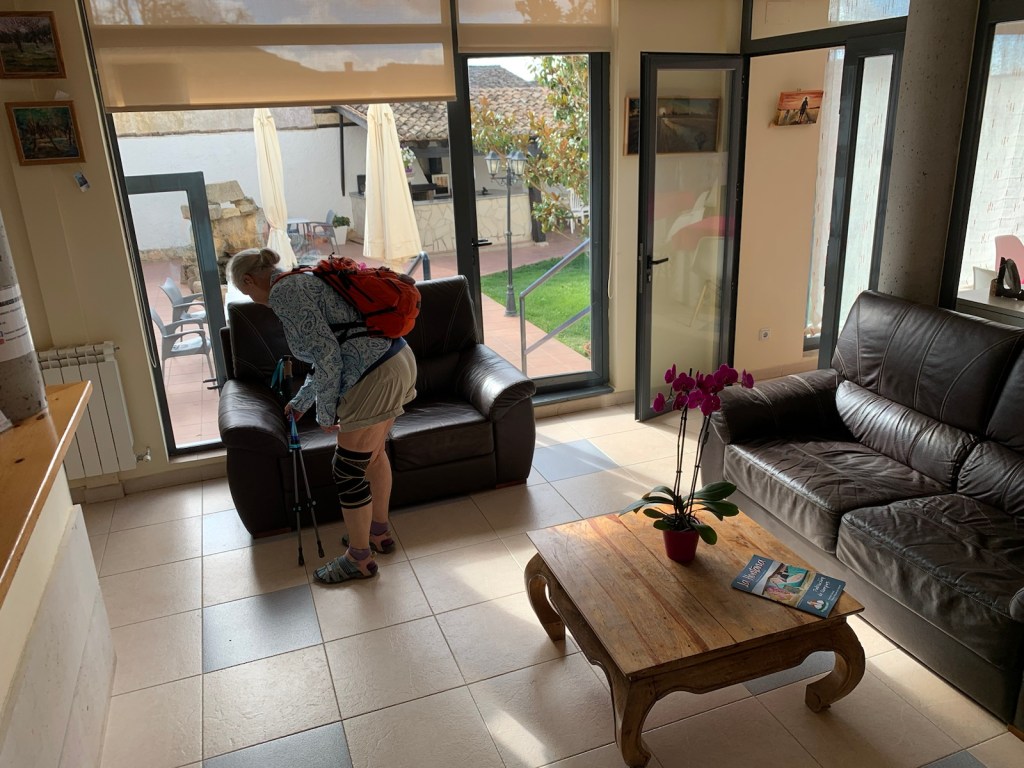 Today, our third visit to this gem on the Camino, was a little different. We had only walked 6 miles and our daypacks were much lighter, but we were still a bit tired. It’s been 10 years! We were again met by our host and welcomed. After a brief moment for eyes to recognize familiar faces, we were embraced like a long lost friend and handed a glass of cool sangria as we were offered a seat on that same leather couch as we waited for our room to be ready.