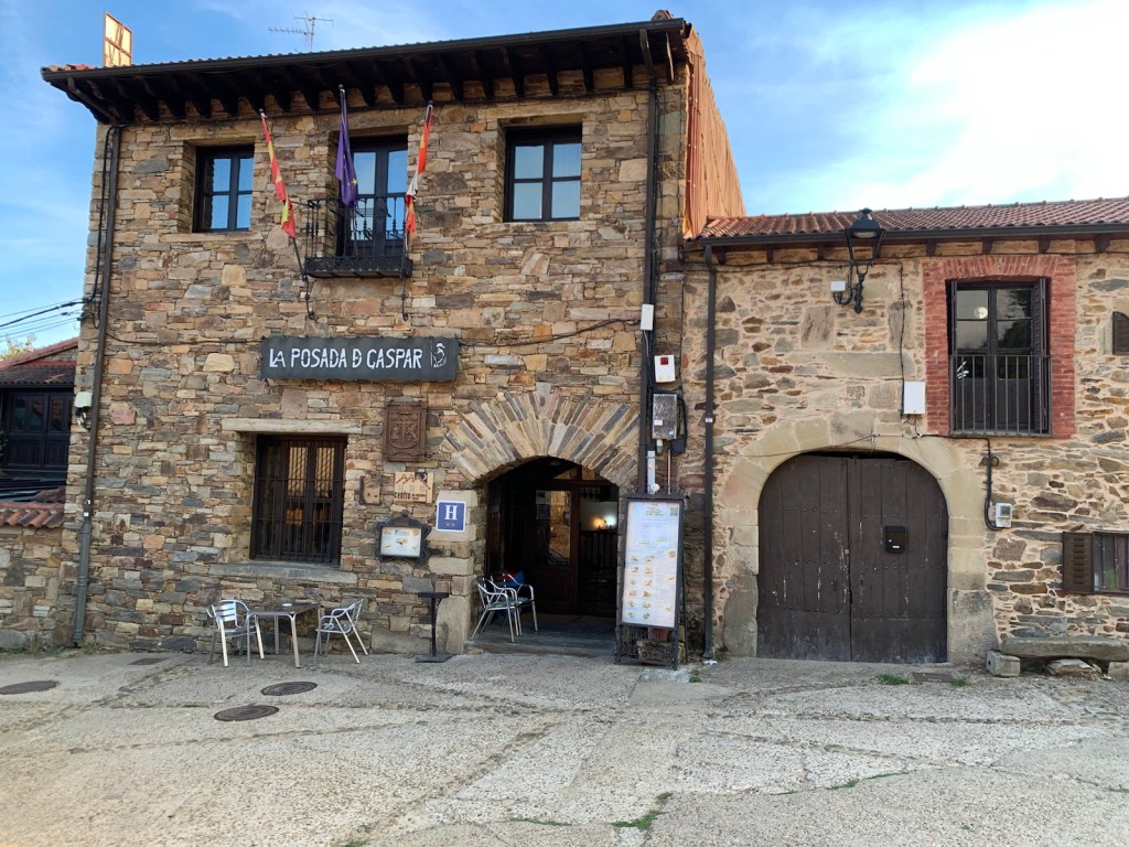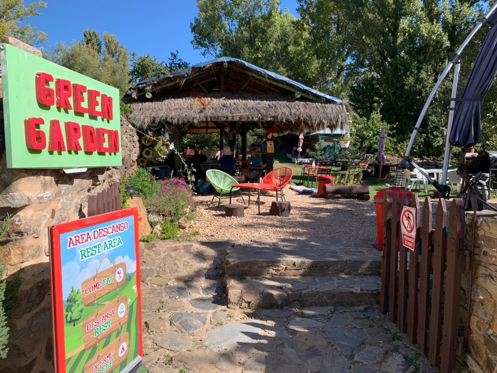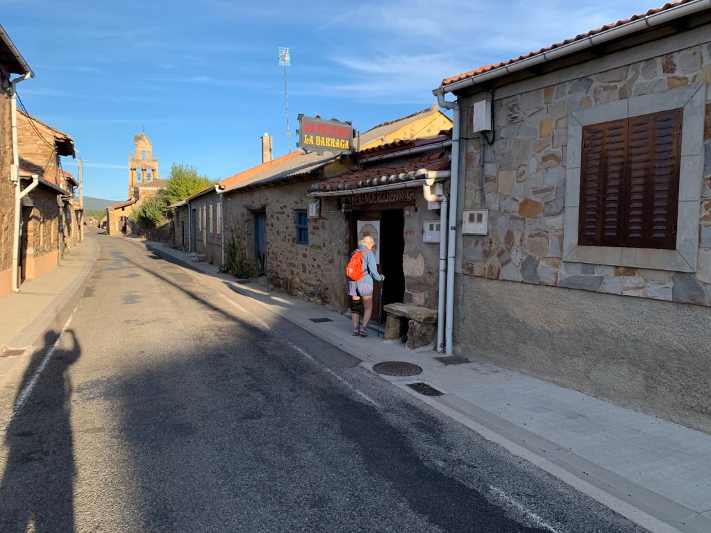 The main street in Rabanal (pop. 73) is steep from beginning to end. There are several types of places to stay: albergues, hostels, and even tents along the main street through the village … and several eateries.