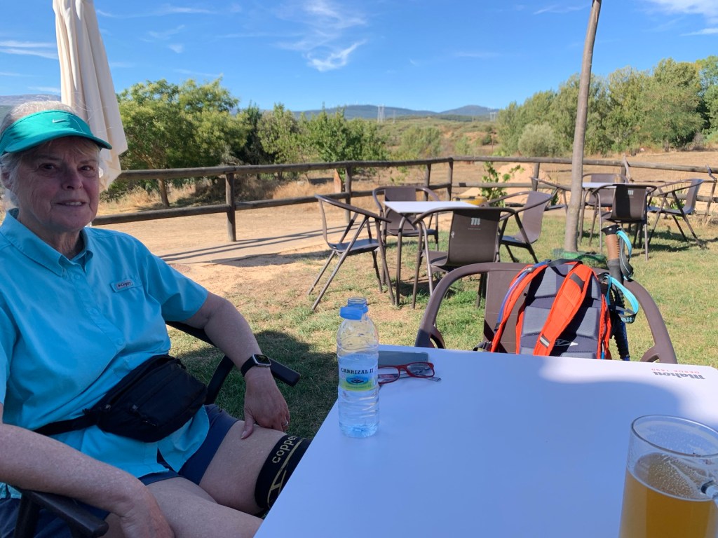 Agua for Linda, cervesa for Jim after a seven mile walk.
