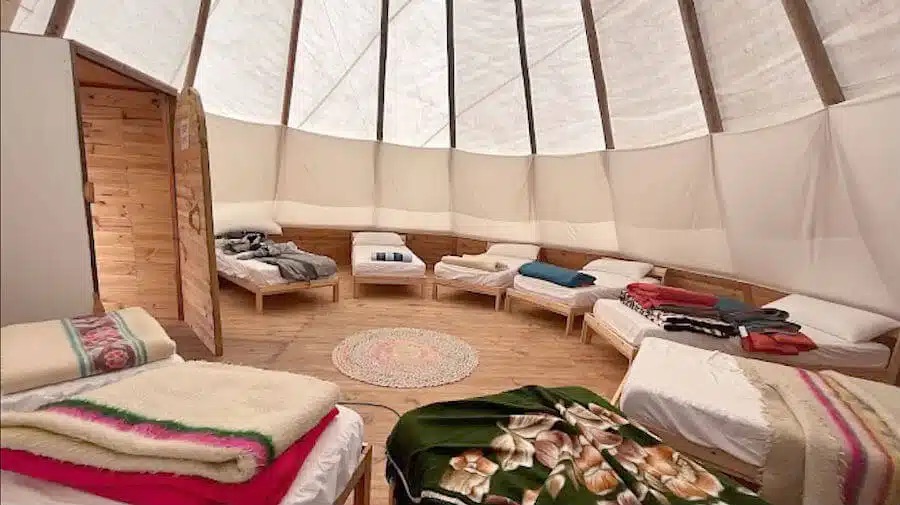Just before Ganzo is an unusual albergue called The American Indian Way. We’ve only seen it from a distance as we walked by in the past but Jim found a photo of the accommodations on the albergue’s website.