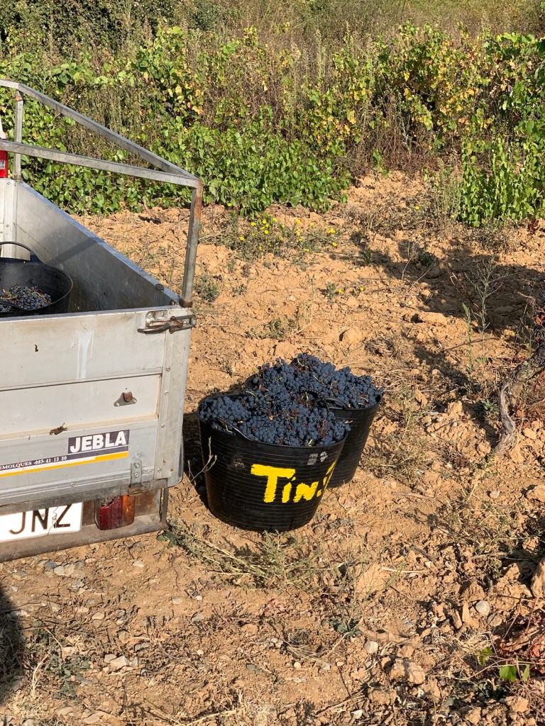 Most of the vineyards have been harvested by now, but an occasional bunch of grapes could be seen among the vines. We observed several groups of three or four people apparently looking for “missed” grapes and we passed a small vehicle with evidence of their “bounty”. We wondered if it was a common practice for the large vineyard owners to allow locals to come behind and retrieve any unharvested grapes for personal use.