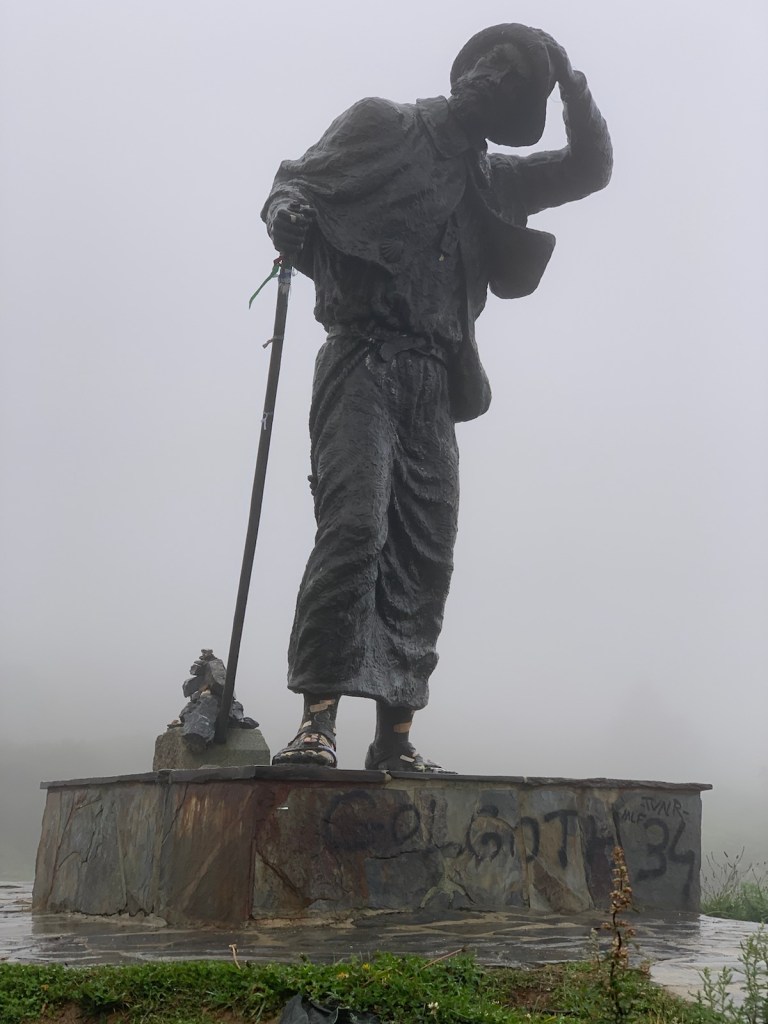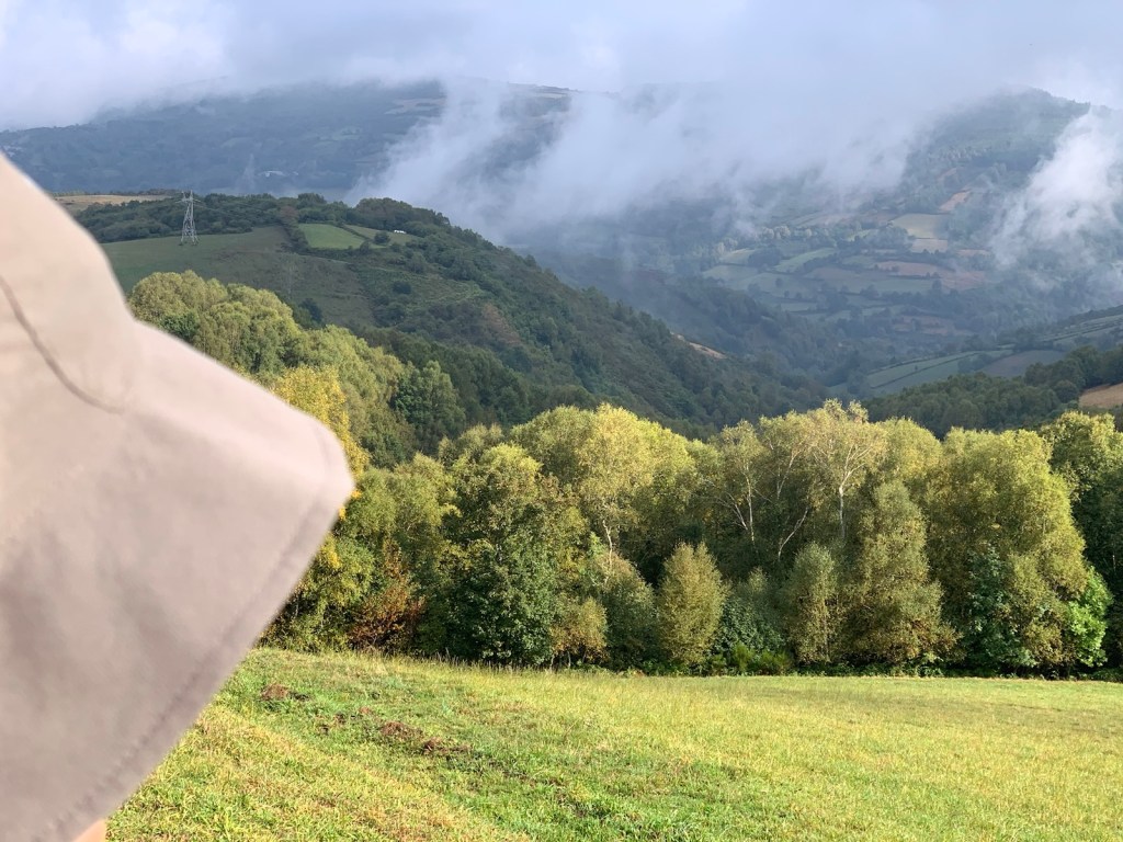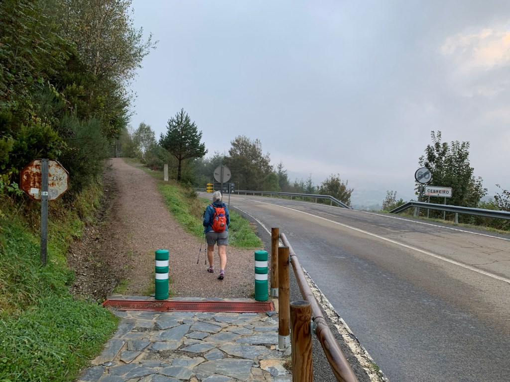 We started the day with a taxi ride to Cebreiro. This allowed us to skip the 11 miles section of the Camino from Trabadelo, which continued along the road through the Valcarce Valley, then on to the path up the mountain to Cebreiro, the first official town in Galicia. The driver dropped us off at the exit of Cebreiro, where we began walking at an elevation of 4265 ft.