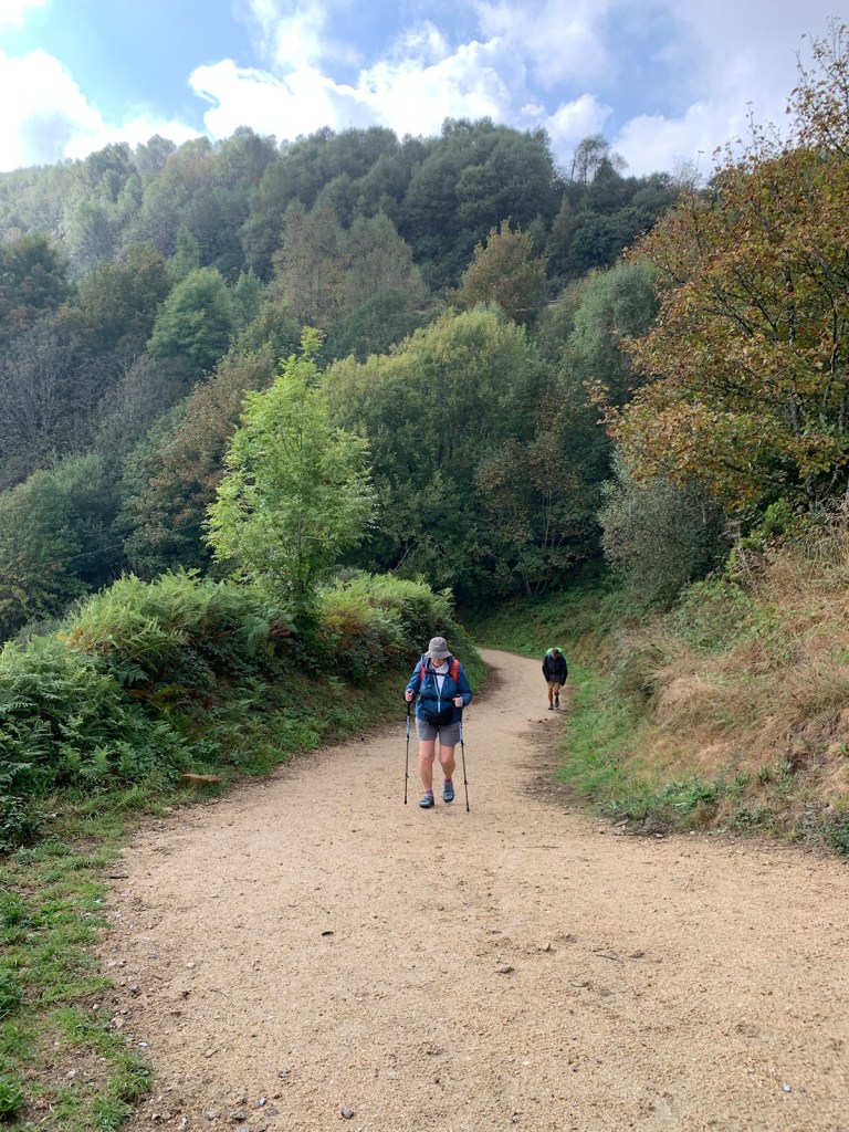 The next few photos show Linda’s progress up a rather steep grade to Alto de Poio, the highest point on today’s walk at 4480 ft.