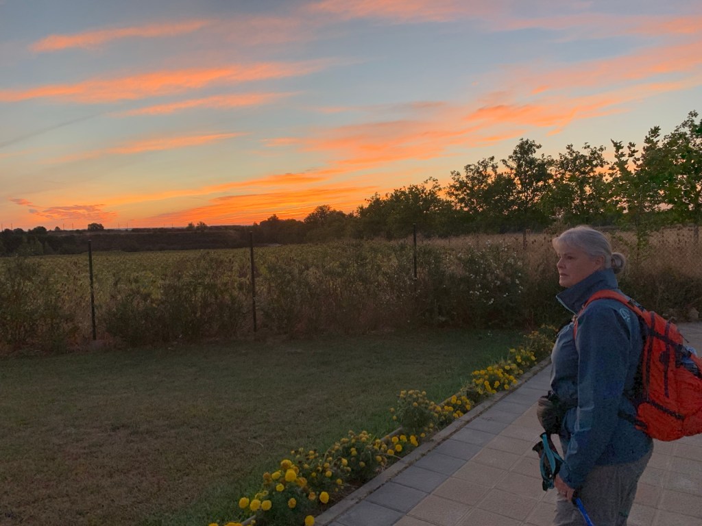 A lady who was also admiring the wonder of the city, overheard us and asked if we were Americans, too. As we chatted she indicated this was her first Camino and she was doing it alone and when she found out we were Camino ” veterans” we answered several of her questions about what was ahead. Her name was Linda and she was Charlotte, NC! After a brief photo session, she went on to check out the Catedral and we said our Buen Caminos.