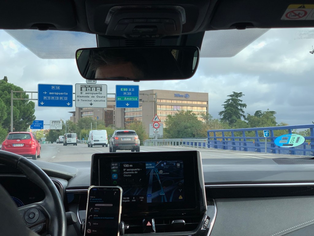 We turned right into a tunnel leading to A-2, a main expressway leaving the city in the direction of the huge airport (MAD) in the Madrid district of Barajas.