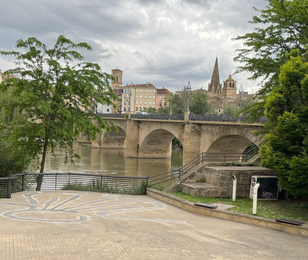 The final mile to Logroño was all downhill, but in a nice way. At the bottom of the hill we walked past a funeral home/crematory (with a sigh of relief) then through a welcoming park along the Rio Ebro and crossed the bridge into Logroño.
