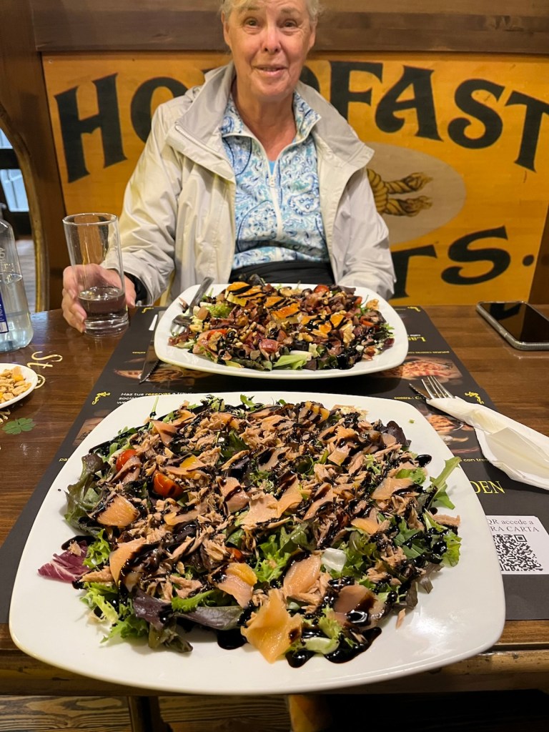 Fortunately, both ensaladas were delicious. Unfortunately Jim could only eat about half of his and Linda couldn’t make it past her second bite. We asked for the equivalent of a “doggy bag” in broken Spanish/sign language and with a fridge in our room, figured we’d share her salad later after getting off our feet.