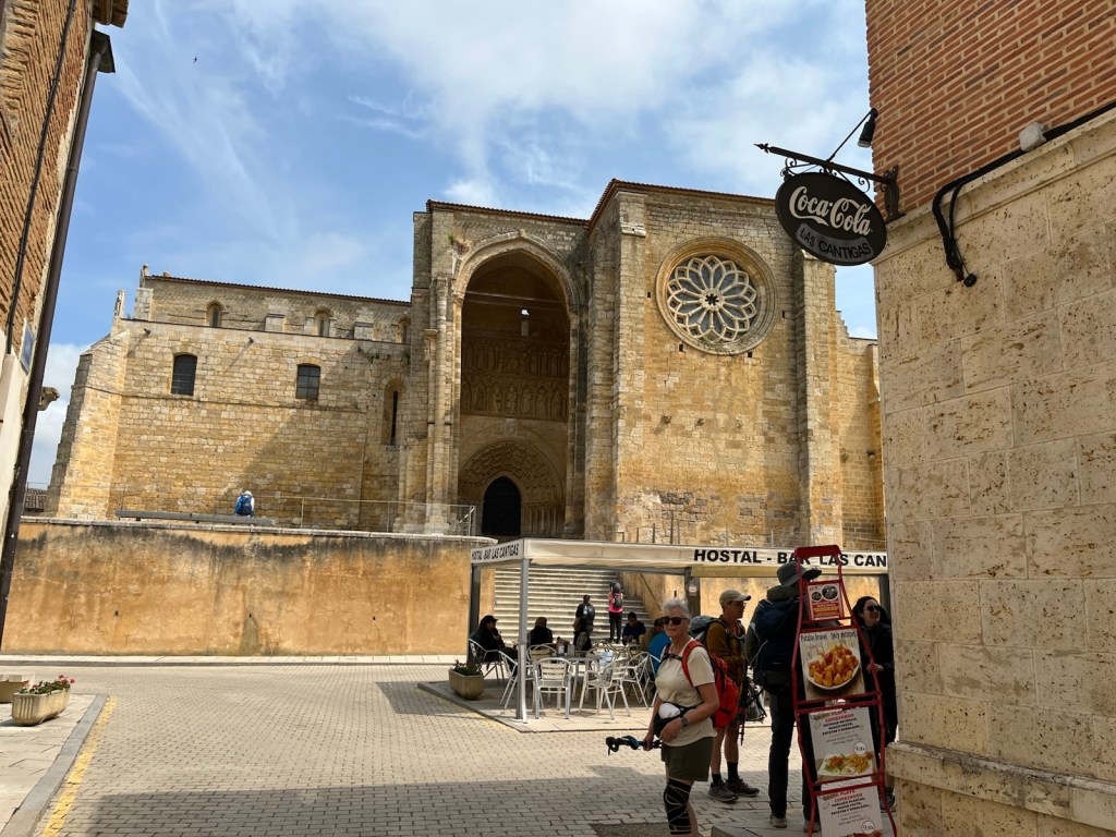 Our first sighting of Villalacazar de SirgaArriving in Villalcázar de Silva, the village plaza with food services just around the corner and the Iglesia de Santa María la Blanca straight ahead.