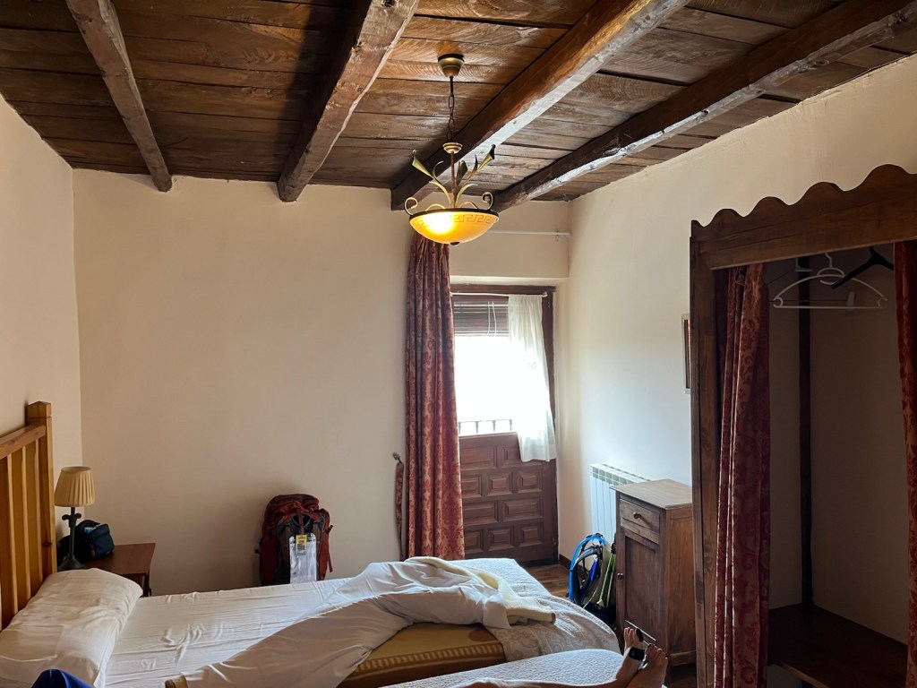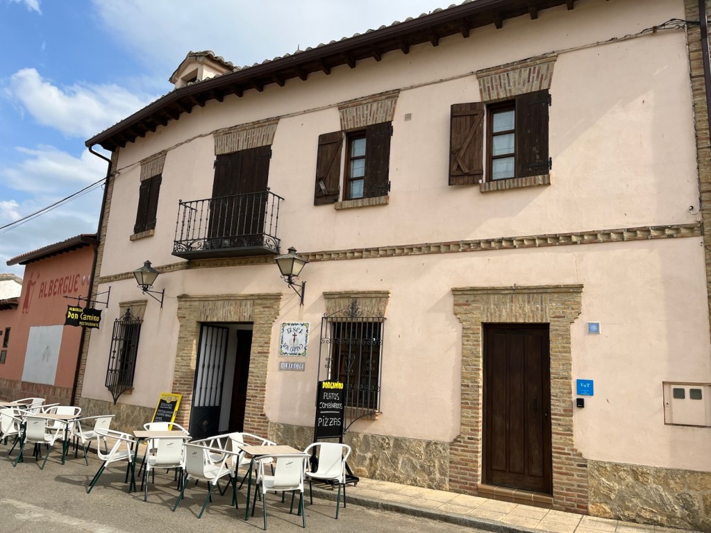 Outside of Don Camino Casa RuralReception and dining area Common courtyard for guests Shared living area for private room guests.Our double room with ensuite bathroom (60€).