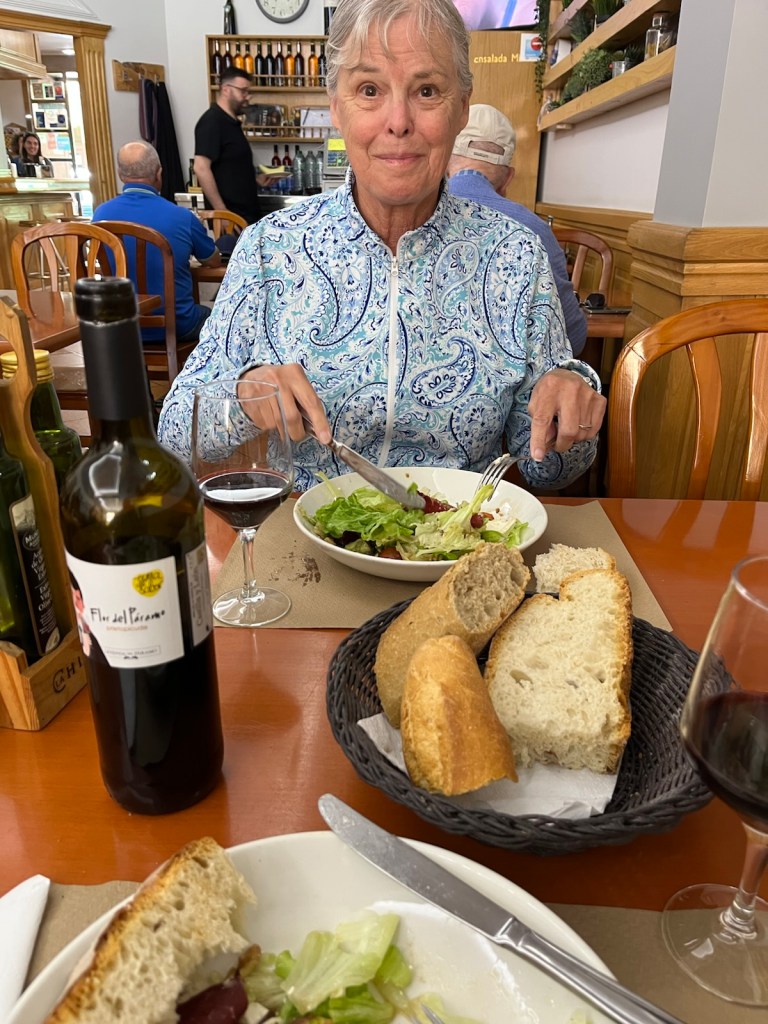 For our first course on Friday, for example, we were introduced to a nice, young Leon wine (2023 Cosecha) made from 100% Prieto Picudo grapes … a first for us. It was paired with a salad consisting of fresh, crisp lettuce, thin sliced cured beef, assorted nuts, grilled coat cheese dressed with balsamic and olive oil.