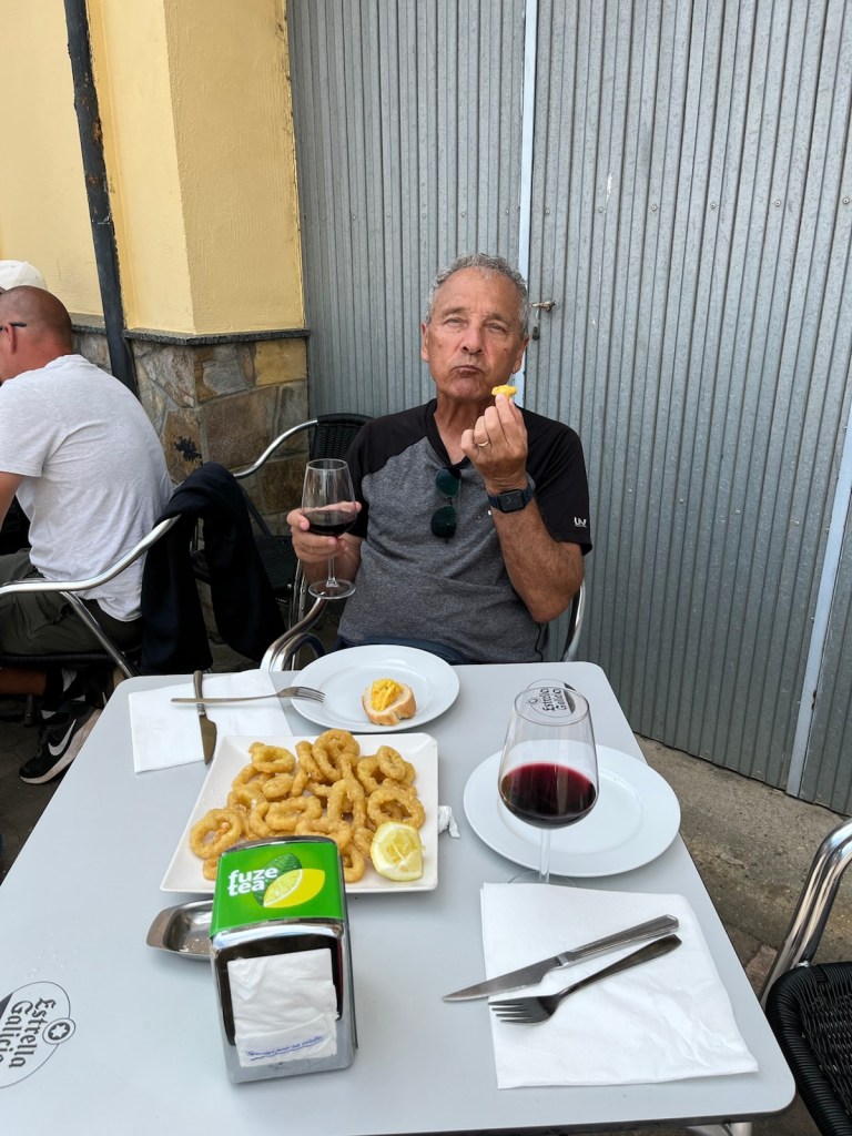 Our hotel was not ready for us, nor did they offer food before 1:30, so we retraced our steps to the Oasis Bar and had a glass of Mencía wine to go with a racione of calamari to fill our tummies and the time gap between our planned Camino and the actual circumstances facing us.
