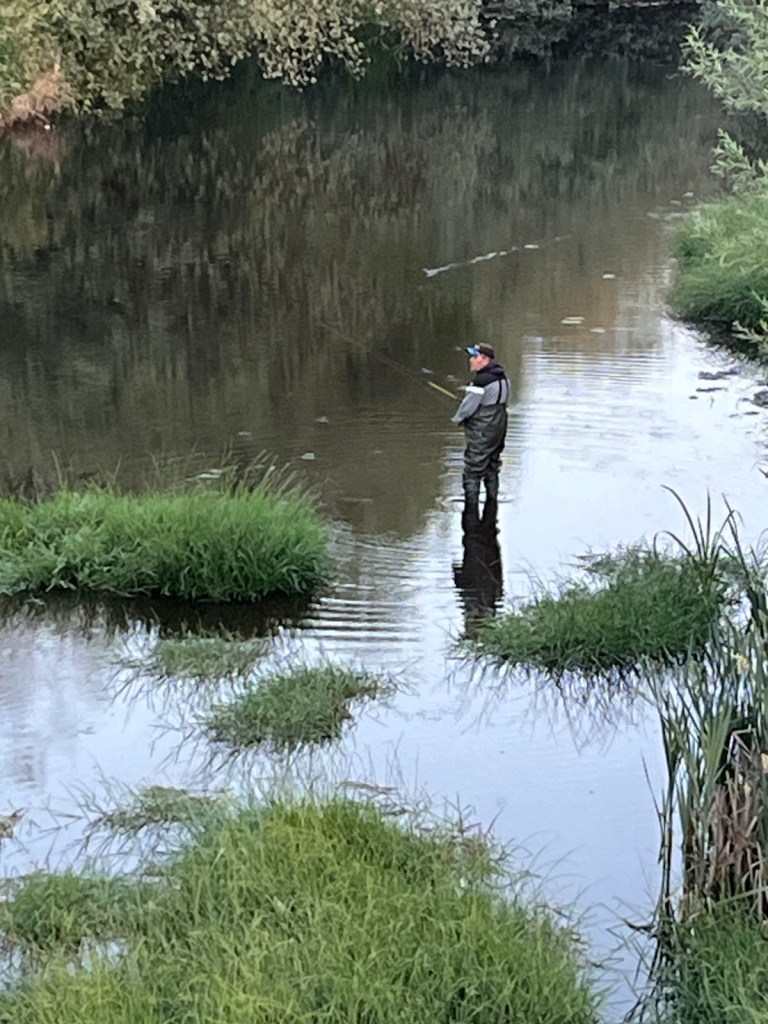 Trout fisherman waiting for a bite as we crossed over the Rio Tuerte.