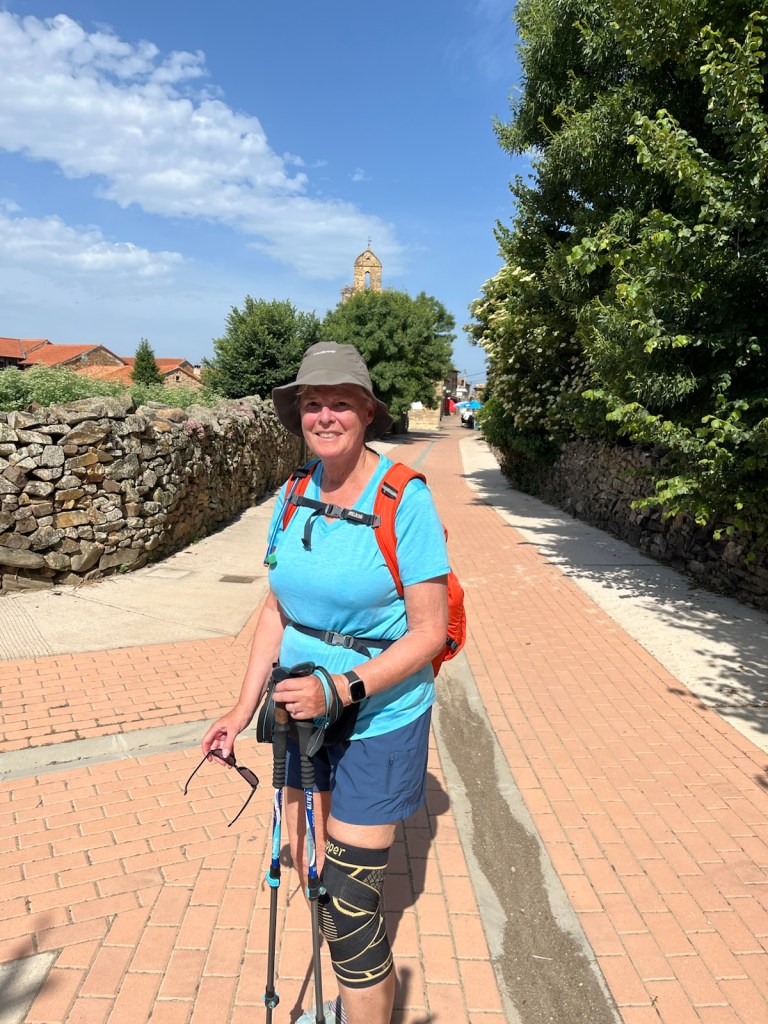 Arriving at the entrance of Santa Catalina de Somoza with the Iglesia de Santa María in the background.